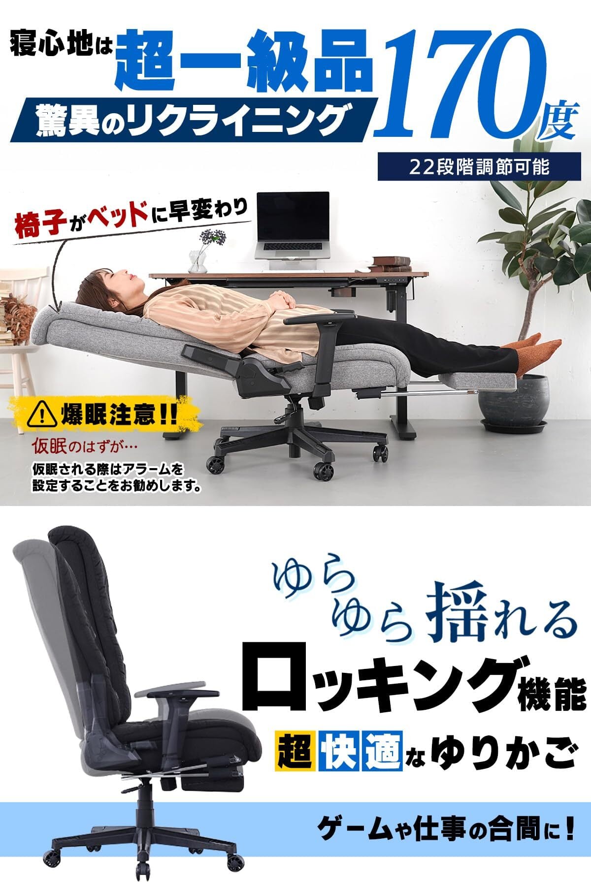 EastForce ゲーミングベッドチェア 170度 リクライニング 日本ブランド ロッキング機能 ファブリック フットレスト ゲーミングチェア ソファチェア オフィスチェア ブラック
