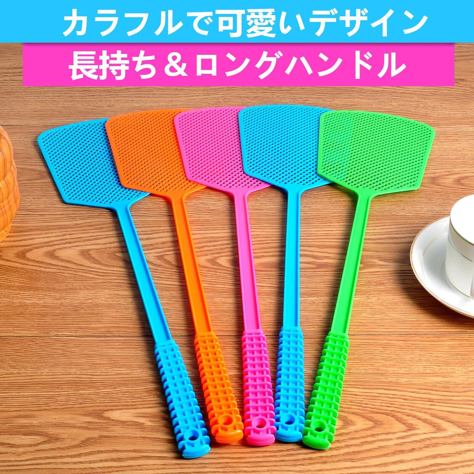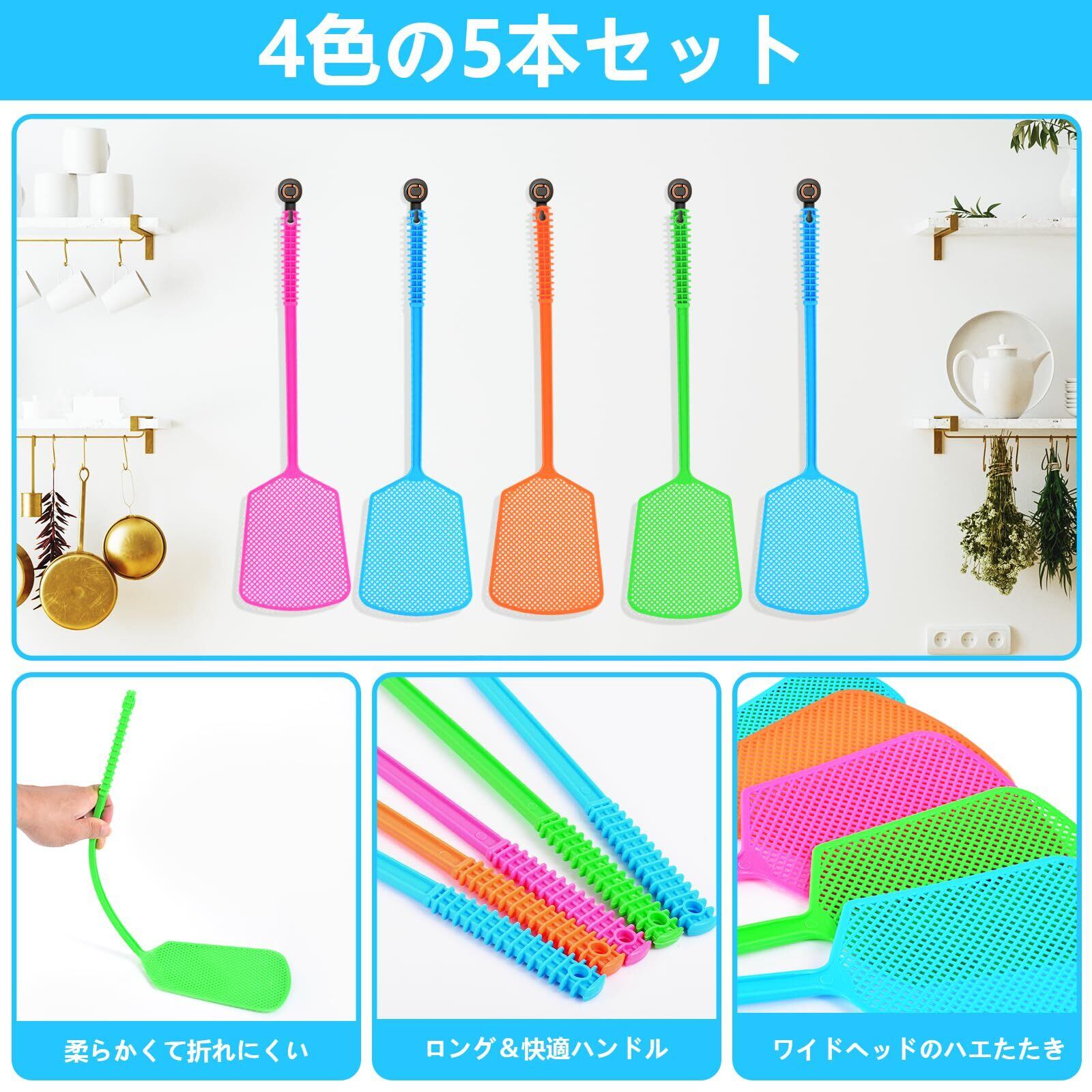 【特価商品】ハエたたき、プラスチック製高耐久手動フライキラー5個パック、ロングハンドルフライスワート、屋内と屋外用の大きな虫たたき。