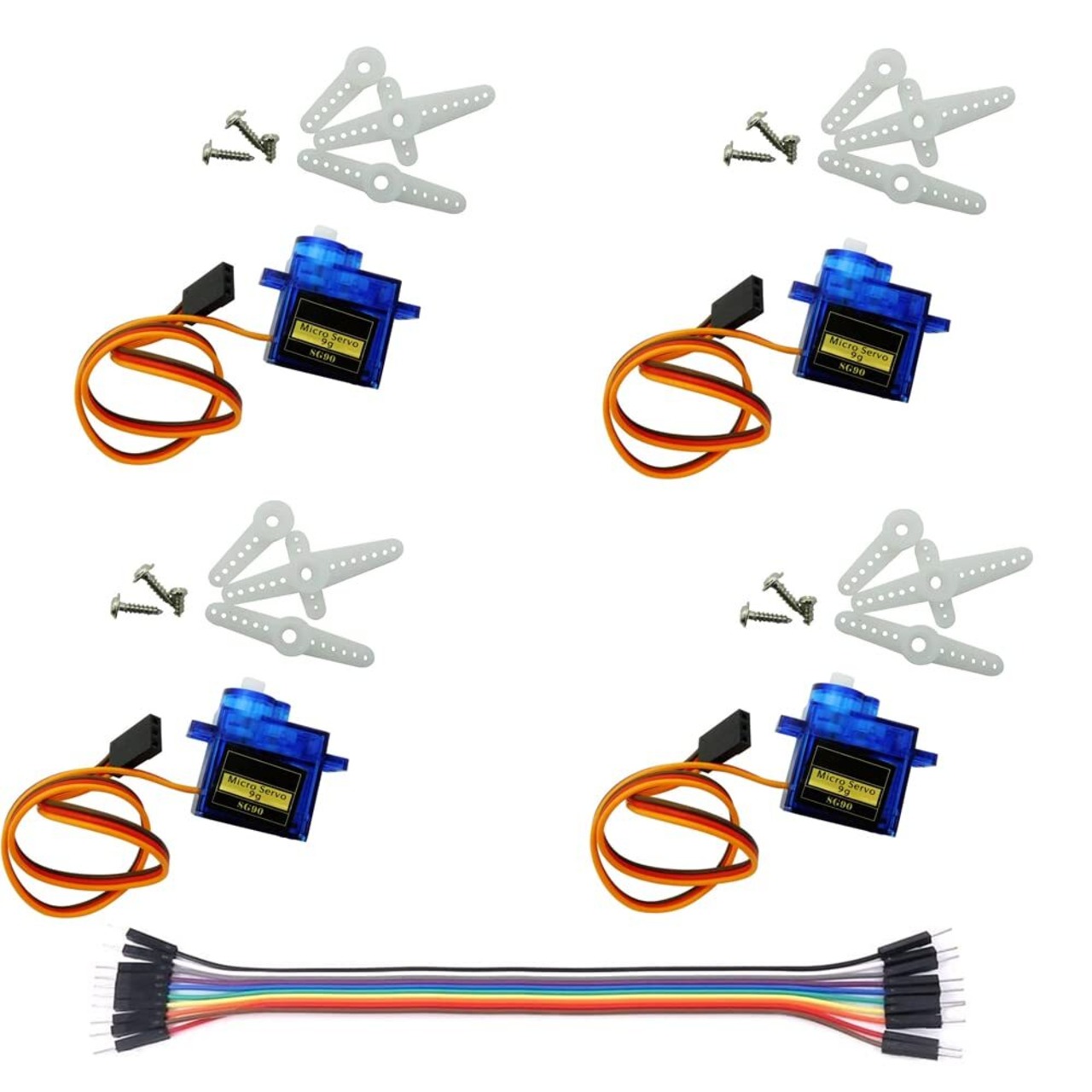 YFFSFDC 4個 SG90 9gマイクロサーボモーター180°RCロボットヘリコプター飛行機制御カーボートロボット制御ケーブル付き DIYエレクトロニクス デュポンケーブルを含む 5点セット
