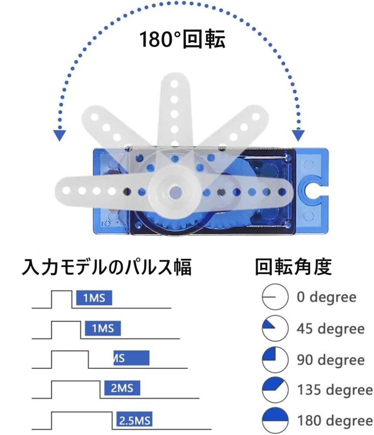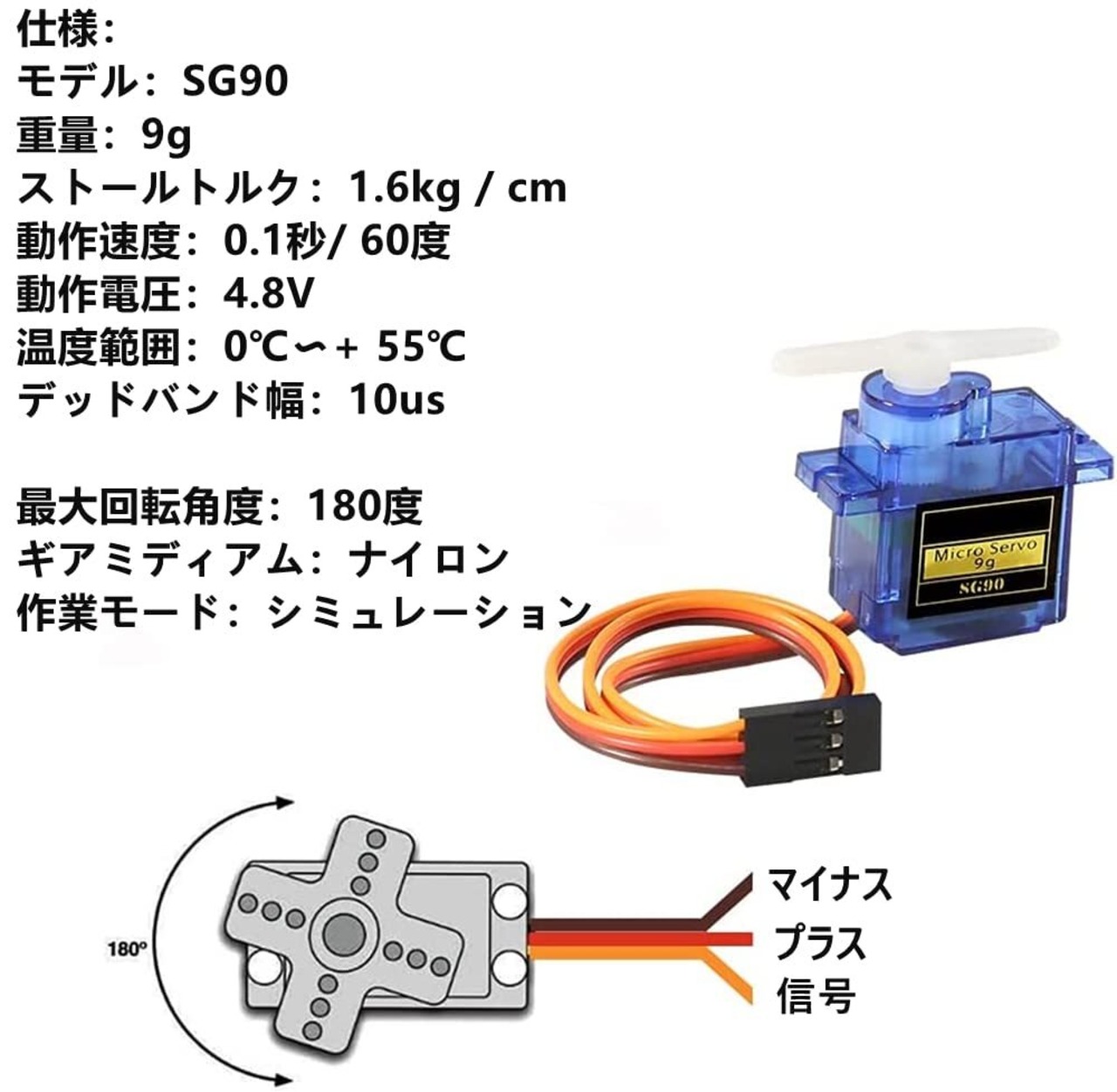 2.【ストールトルク】1.6kg / cm(4.8V); 動作速度:0.11秒/ 60度(4.8V)サーボ最大角度は180°です。