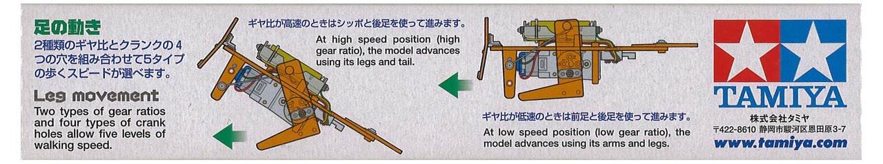 ギヤボックスの組みかえで2種類の走行スピードが選べます。