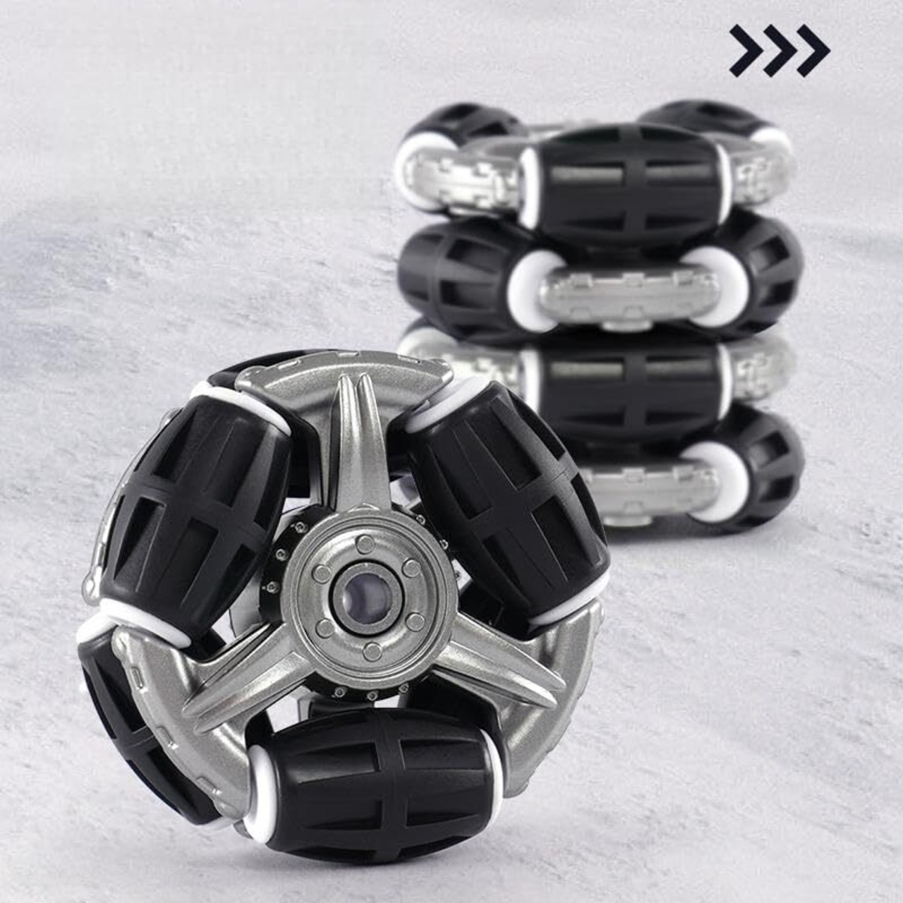 特殊タイヤのリモコンロボット:特技用タイヤを採用したリモコンロボット。優れた走行性能で様々な路面に対応し、リモコン操作でスムーズな動作を実現。リモコンおもちゃとして子どもが思い切り楽しめる。
