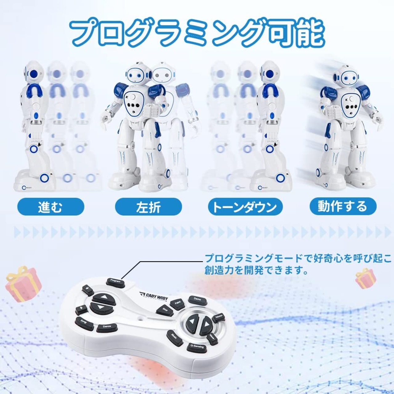 【多機能なスマートロボット】可愛いスマートロボットおもちゃ「コディウィダ」が登場!様々な機能のスマートロボットで、歩くとスライド機能、左折と右折機能、ダンス機能 、ソング機能、プログラム機能、パトロール機能があります。 屋内と屋外で遊ぶ家庭用ロボットおもちゃとして最適です。推奨年齢:3歳以上