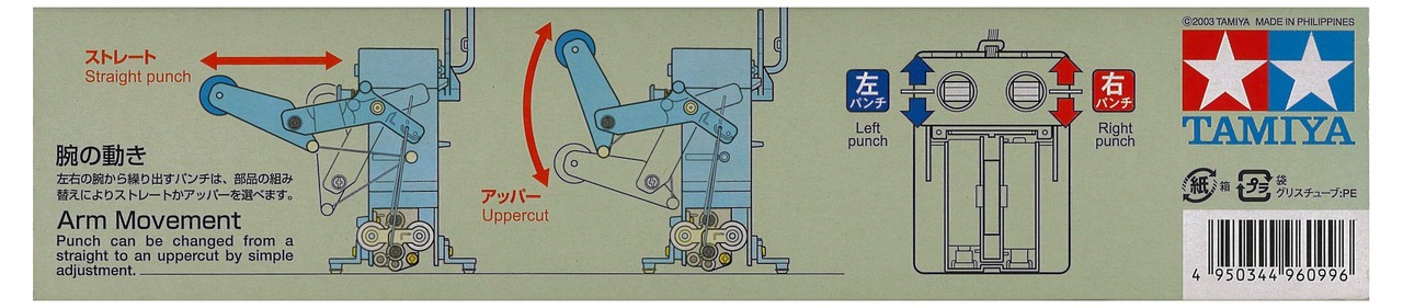 2チャンネルリモコンボックスで自由に動かすことができ、パンチはストレートとアッパーが選べます。