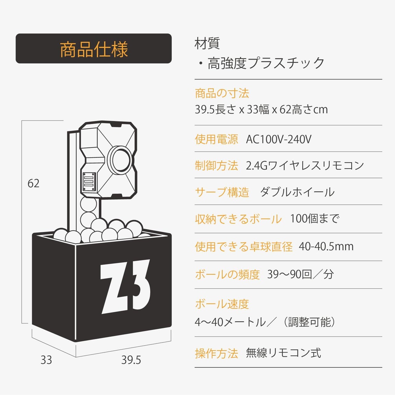 最大100個のボールを収納できます。ボールの頻度は1分間に39〜90回、ボール速度は毎秒4〜40メートルまで調整可能。ユーザーは自分のスキルに合わせるボールの速度や頻度を設定してトレーニングやチャレンジすることができます。