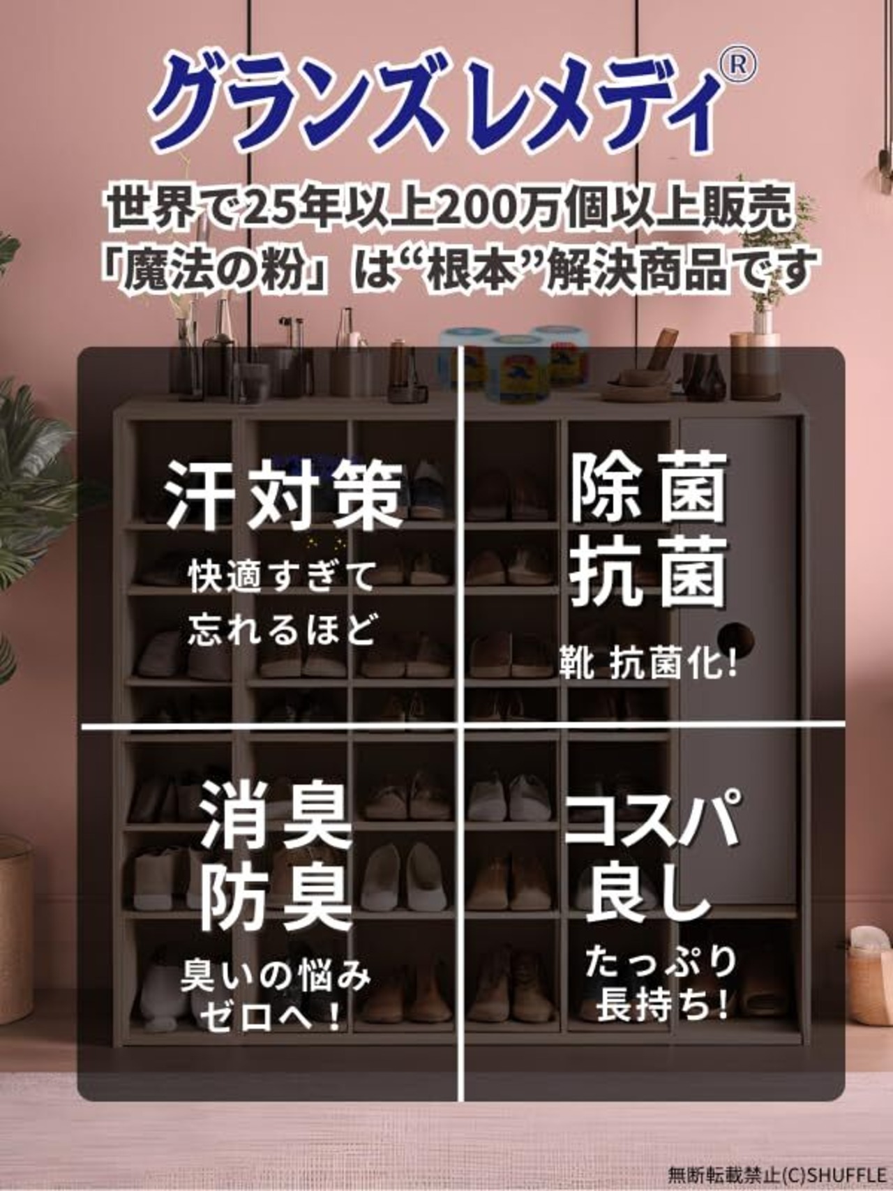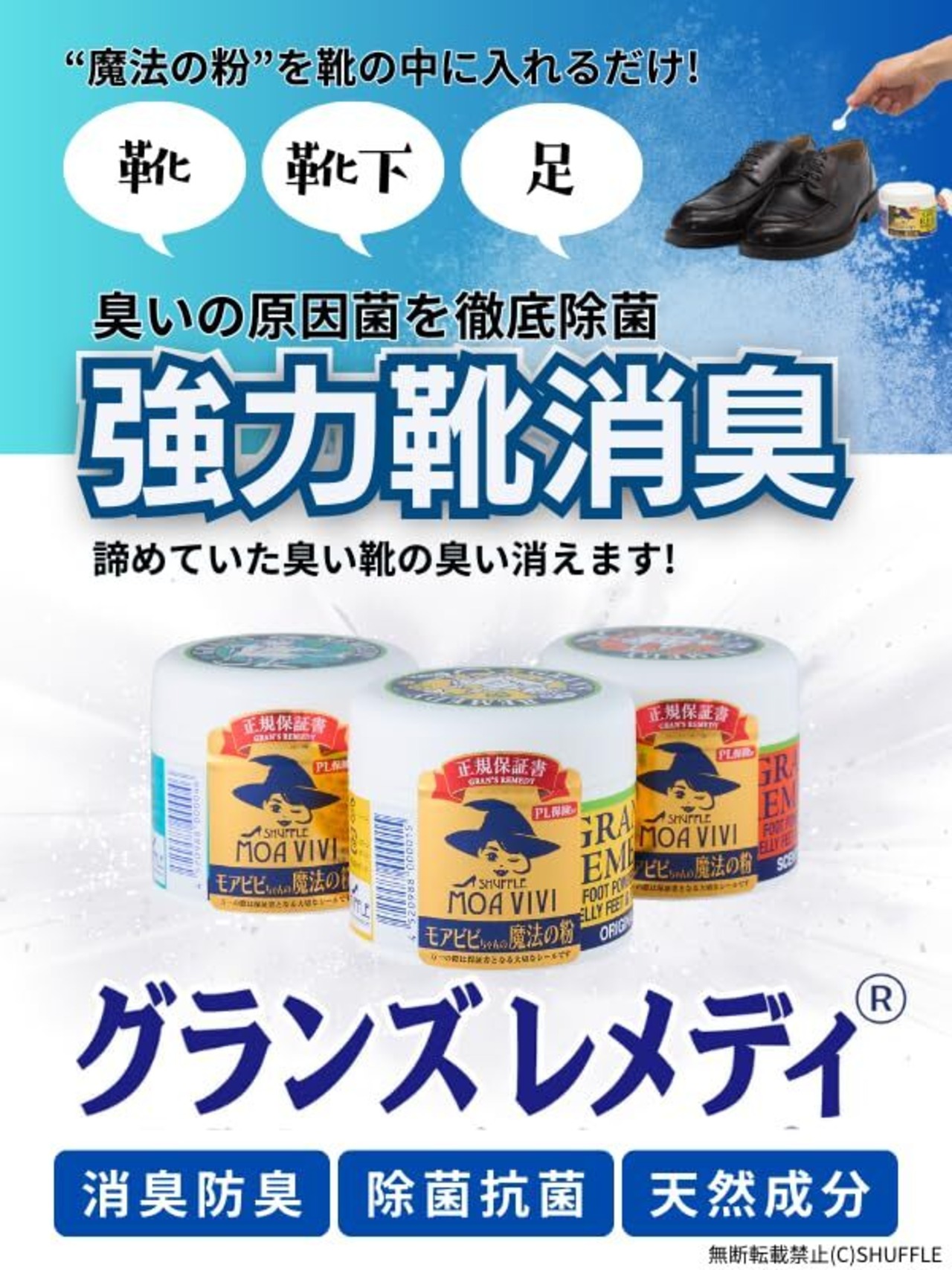 【国内正規品】グランズレメディ モアビビちゃんの魔法の粉 無香料 50g 靴の消臭パウダー