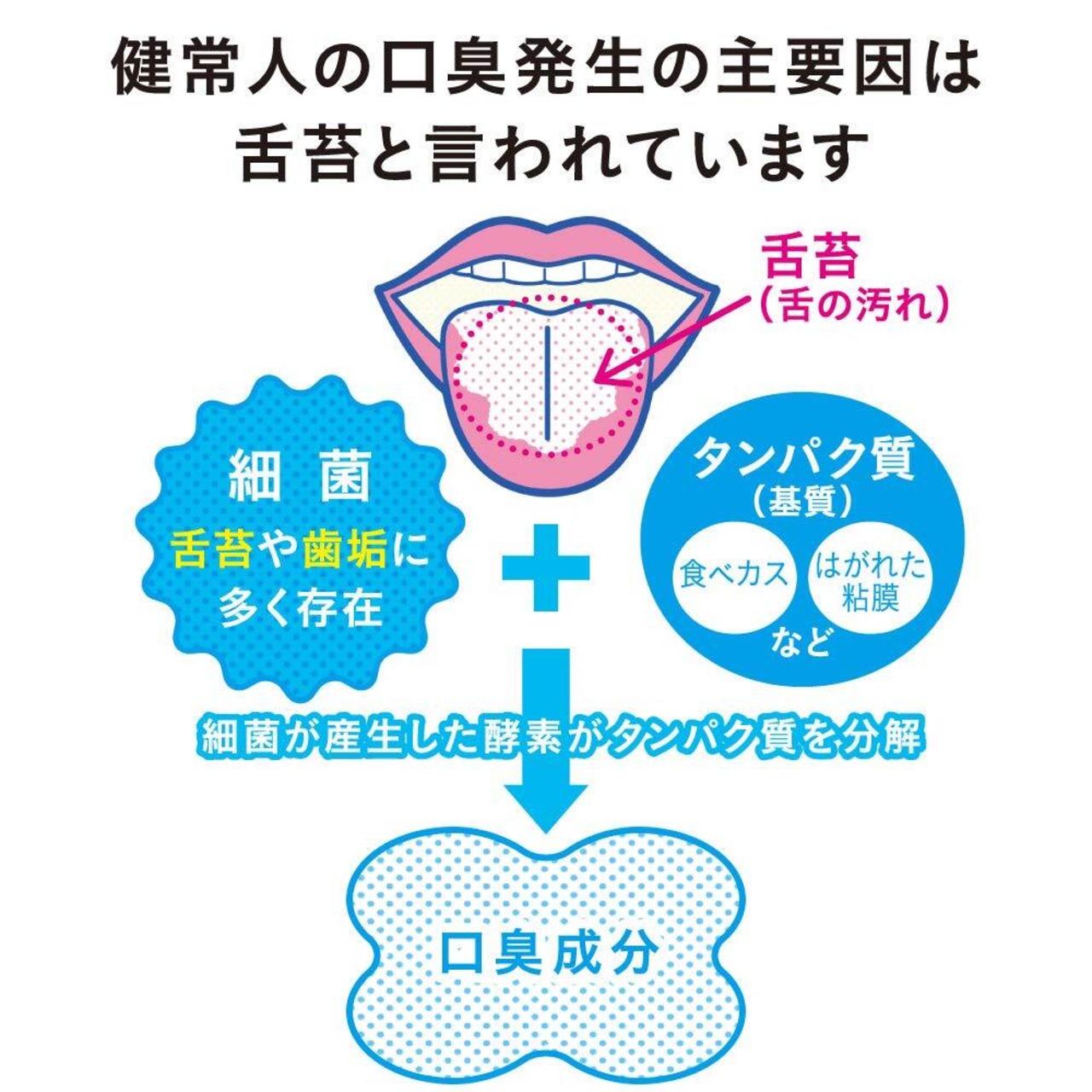 舌クリーナー:ダブルの汚れ落とし機能で、口臭原因である"舌苔"をやさしく、ごっそり落とします。