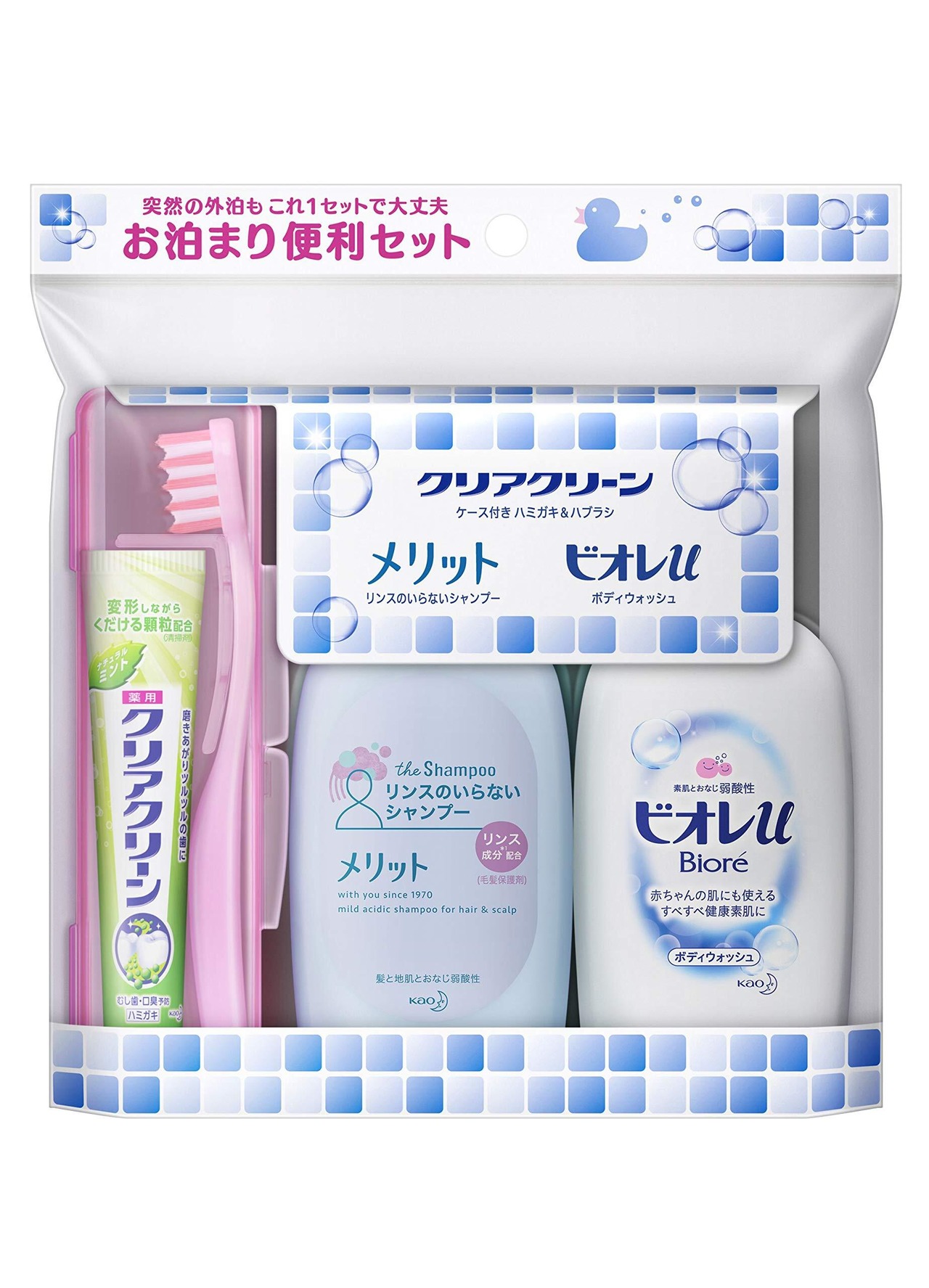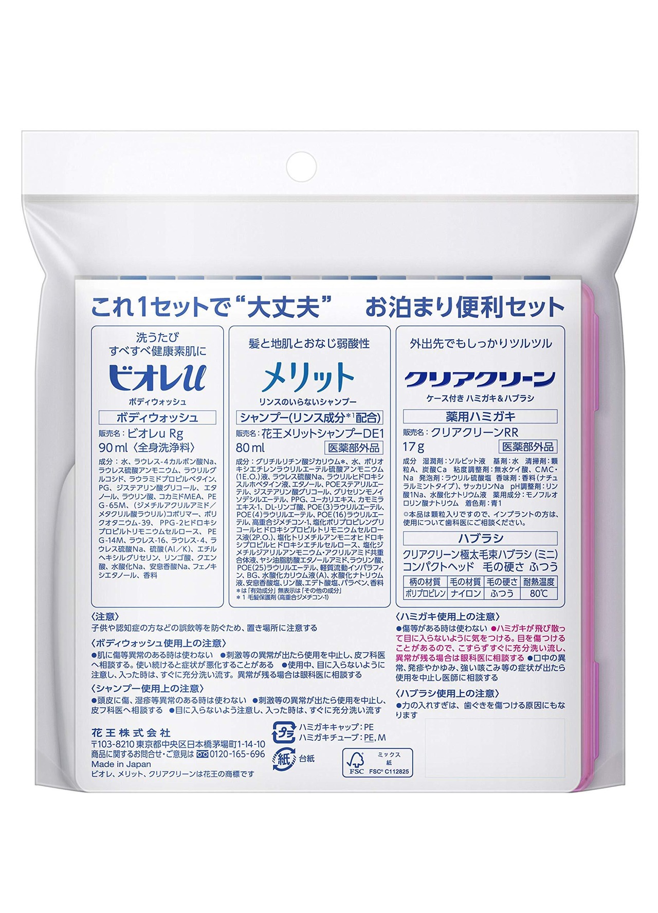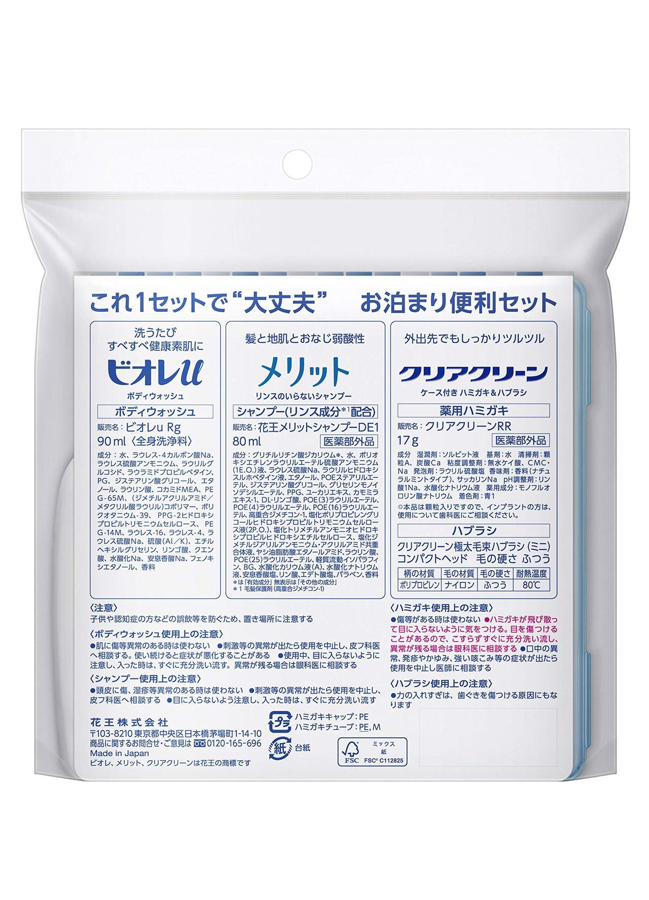クリアクリーン 花王(Kao) トラベルセット (シャンプー・ボディソープ・歯ブラシ・ハミガキ粉)(※歯ブラシの色は選べません)
