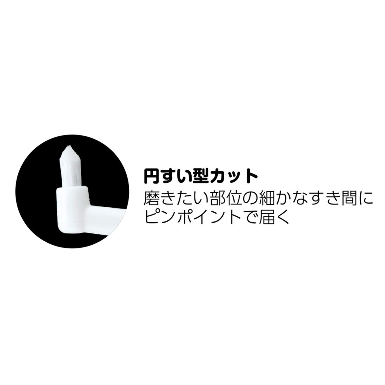 通常のハブラシでは届きにくい細かなすき間の汚れを落とします。円すい型カットで磨きたい部位の細かなすき間にピンポイントで届く。毛先ソフト加工で歯ぐきへの負担を軽減。ペングリップに適した形状のペングリップラバーで余計な力を加えず効果的なブラッシングができます。操作性の良い角度で目的の部位に届きます。(段違いの歯の間、矯正装置のすき間、奥歯の裏側など)毛のかたさ ふつう 毛の材質 ナイロン。本体原料樹脂 ポリプロピレン。ラバー部 熱可塑性エラストマー。耐熱温度 80℃。日本製。個装サイズ 37×218×17mm 15g
