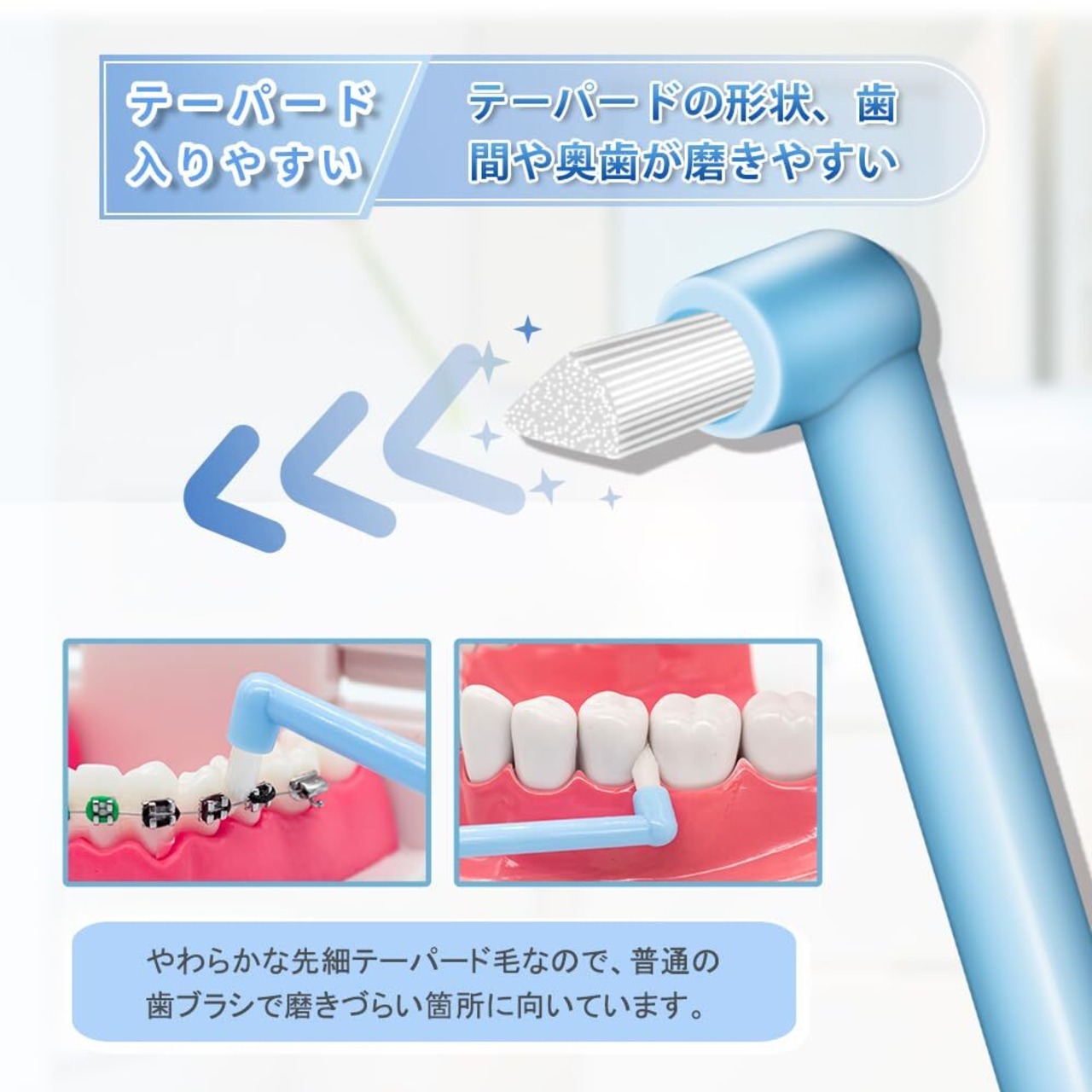 使いやすい、磨きやすい:入りやすいテーパード、タフトブラシの柄も持ちやすく長いので、奥までしっかり届きます。使いやすく、奥歯にも良く届きます。奥歯の歯間は一般的な歯ブラシだと磨きずらいのでこういう部分磨き用の歯ブラシが良いそうです。歯の間に深く入って歯ブラシで落ちない汚れも落としてくれる。