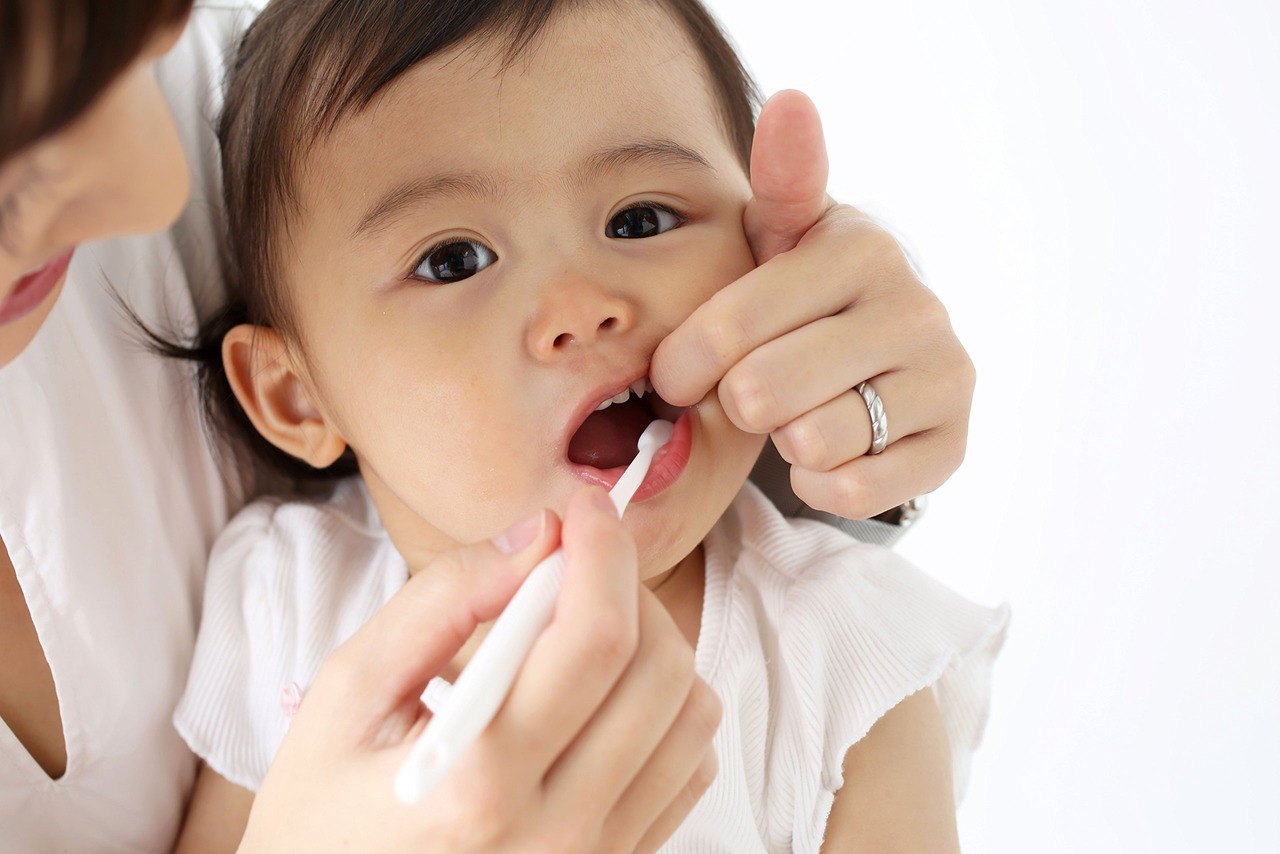 離乳食を卒業した、1才6ヵ月頃からの乳歯のためのフッ素配合歯磨きです。