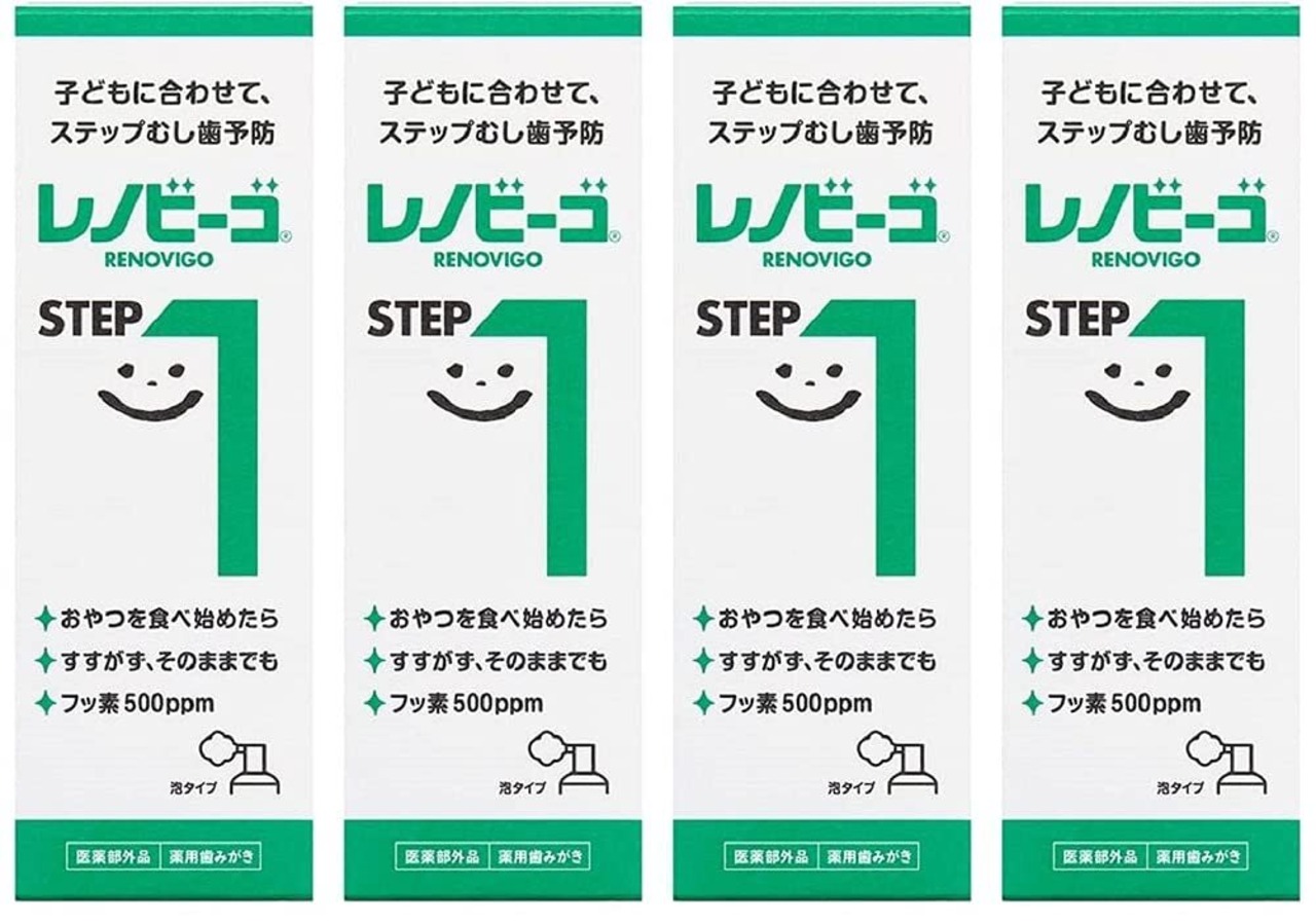 STEP1(ワン)はおやつを食べ始めたころから。500ppmの低濃度でうがい不要。仕上げ歯磨きとして毎日ご使用できます。
