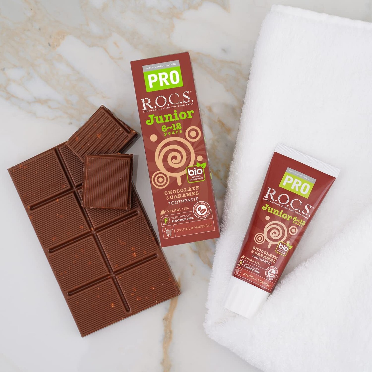 R.O.C.S. ロックスPRO ジュニア(6~12才) チョコ&キャラメル味【ミネラル配合】虫歯予防 こども歯みがき 74g