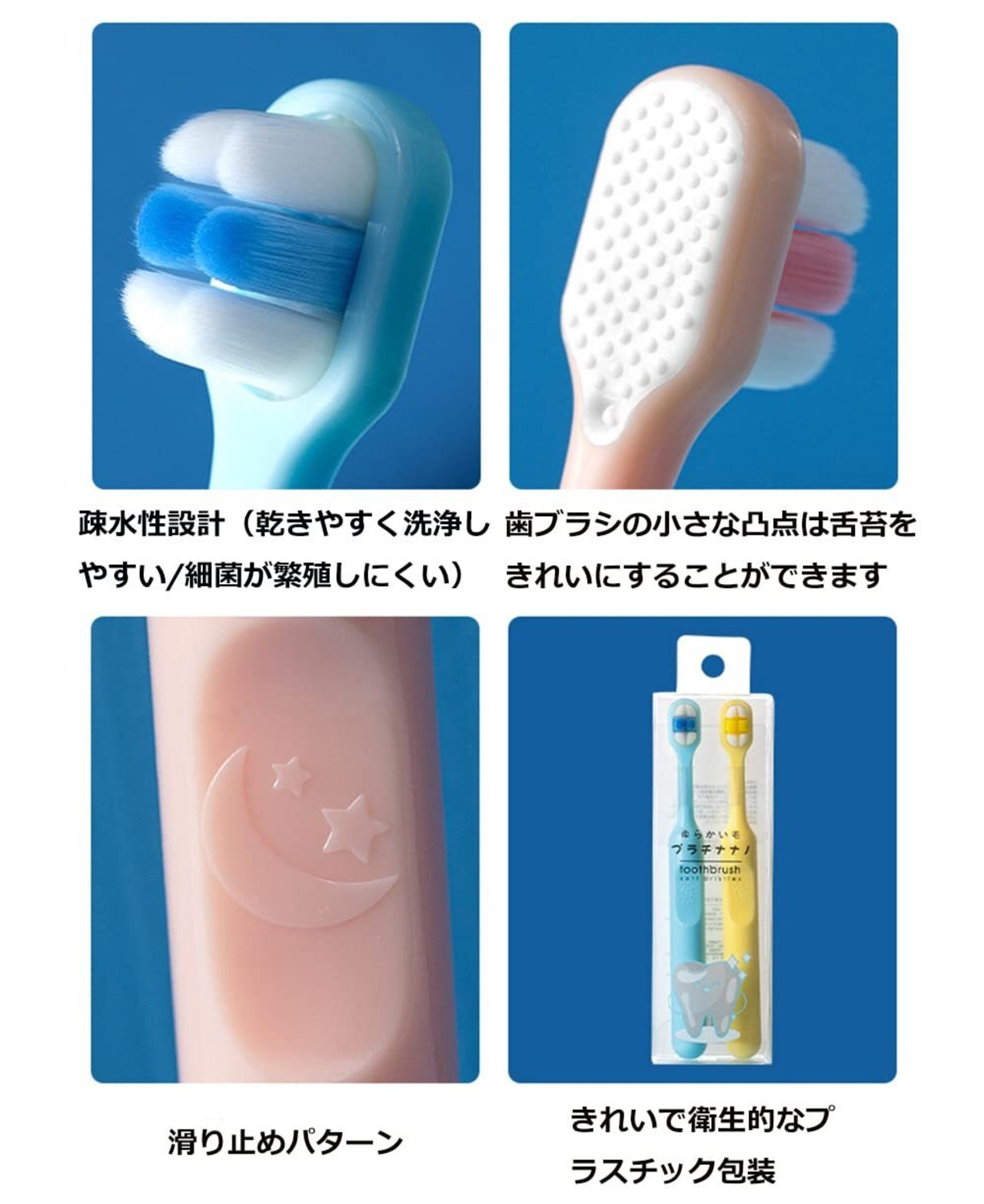 このスーパーソフト歯ブラシはチームの长期独立研究して開発された高品質の製品です。敏感な歯を持つ大人向けと、成長期の子供向けの歯です(3歳以上&歯替え時期)。小さくコンパクトなブラシヘッドも口の小さい人に向いています。