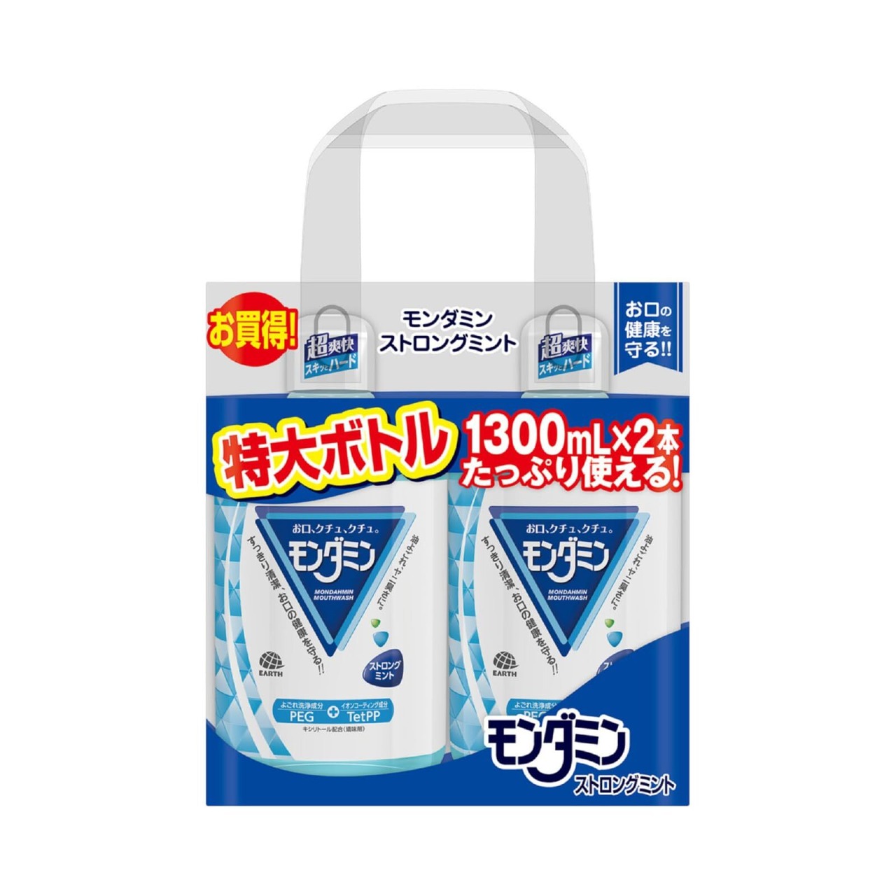 ●モンダミンストロングミントの特大ボトル1300mLが2本入った、たっぷり使えるお買得パックです。