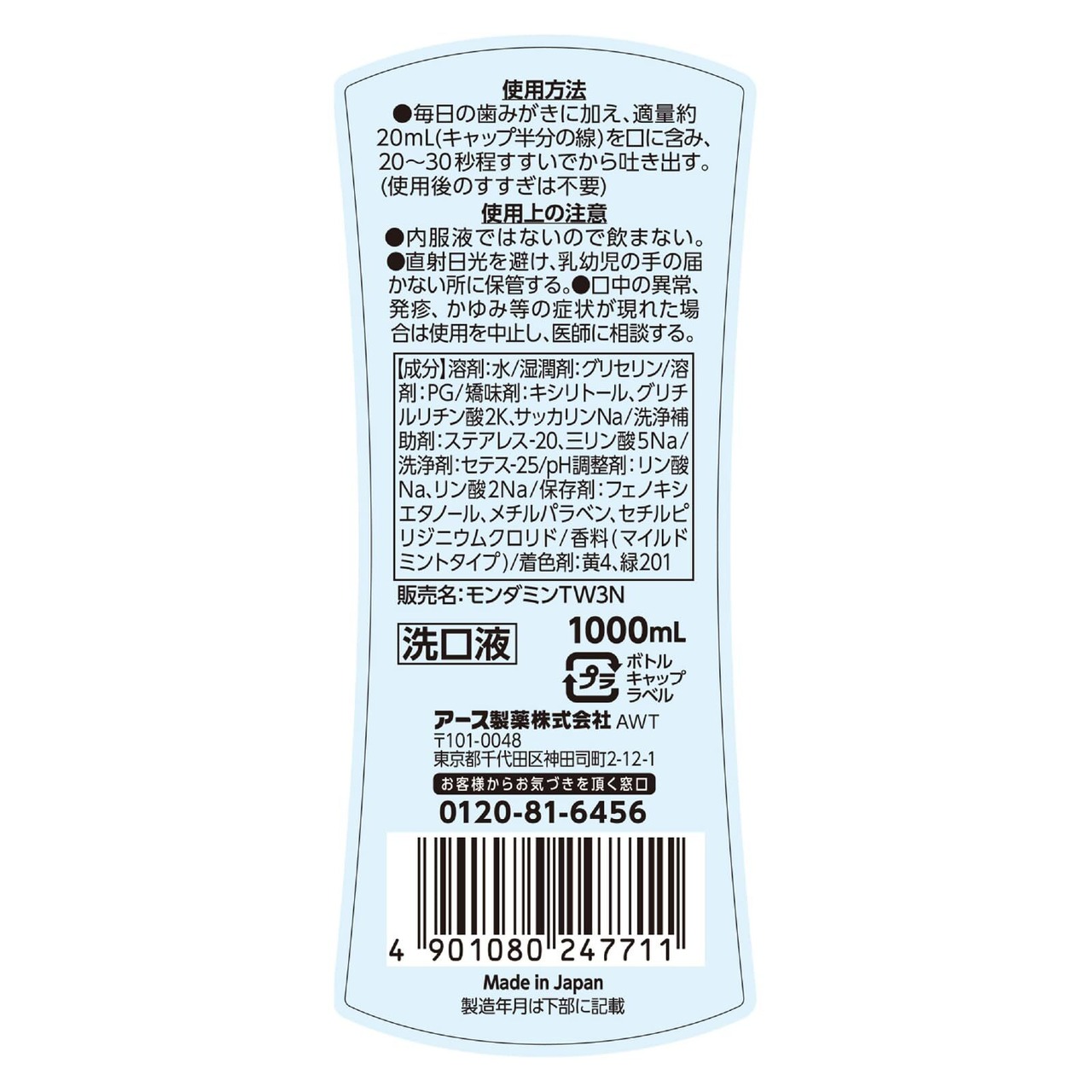 モンダミン マイルドミント マウスウォッシュ ノンアルコール 洗口液 1000mL 低刺激 口臭ケア デンタルリンス オーラルケア