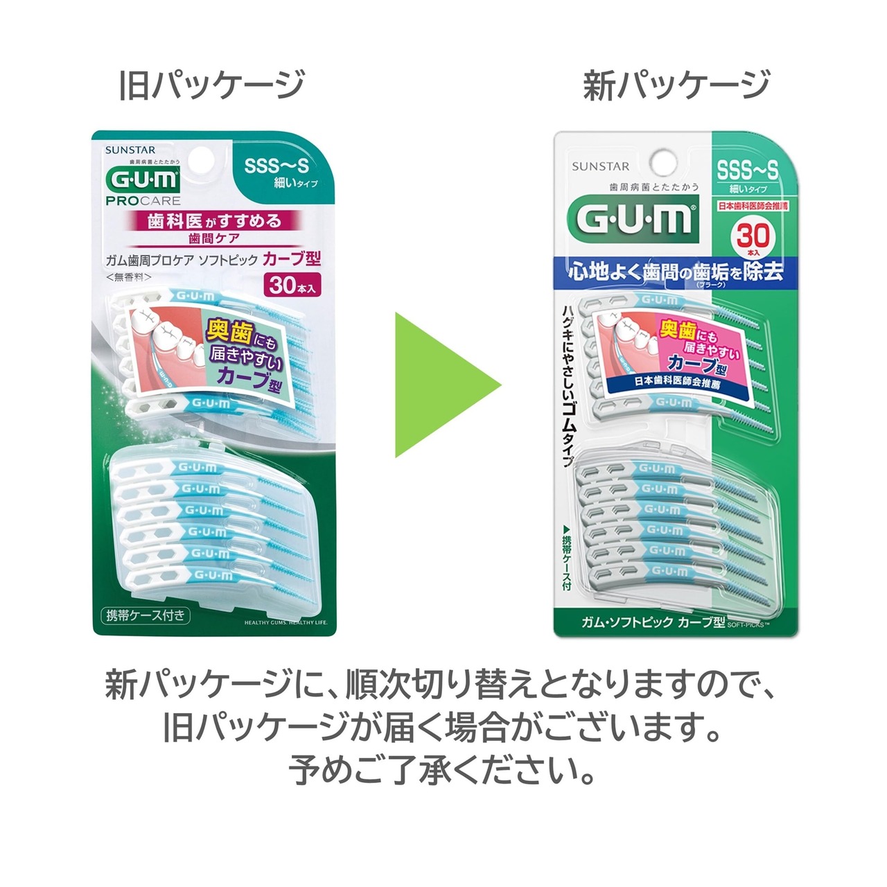【新着商品】GUM(ガム) 歯周プロケア ソフトピック カーブ型 歯間ブラシ やわらか ゴムタイプ ケース付き [サイズ:SSS~S 細いタイプ] 30本入×4個パック+おまけ付き