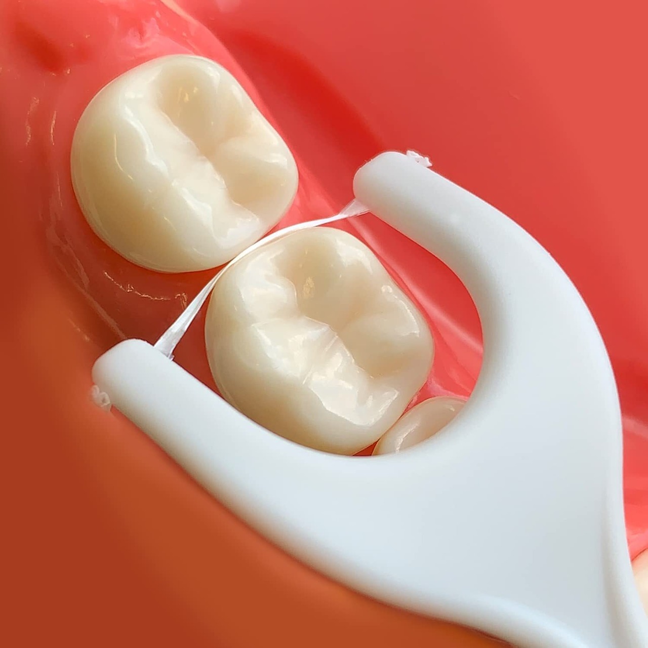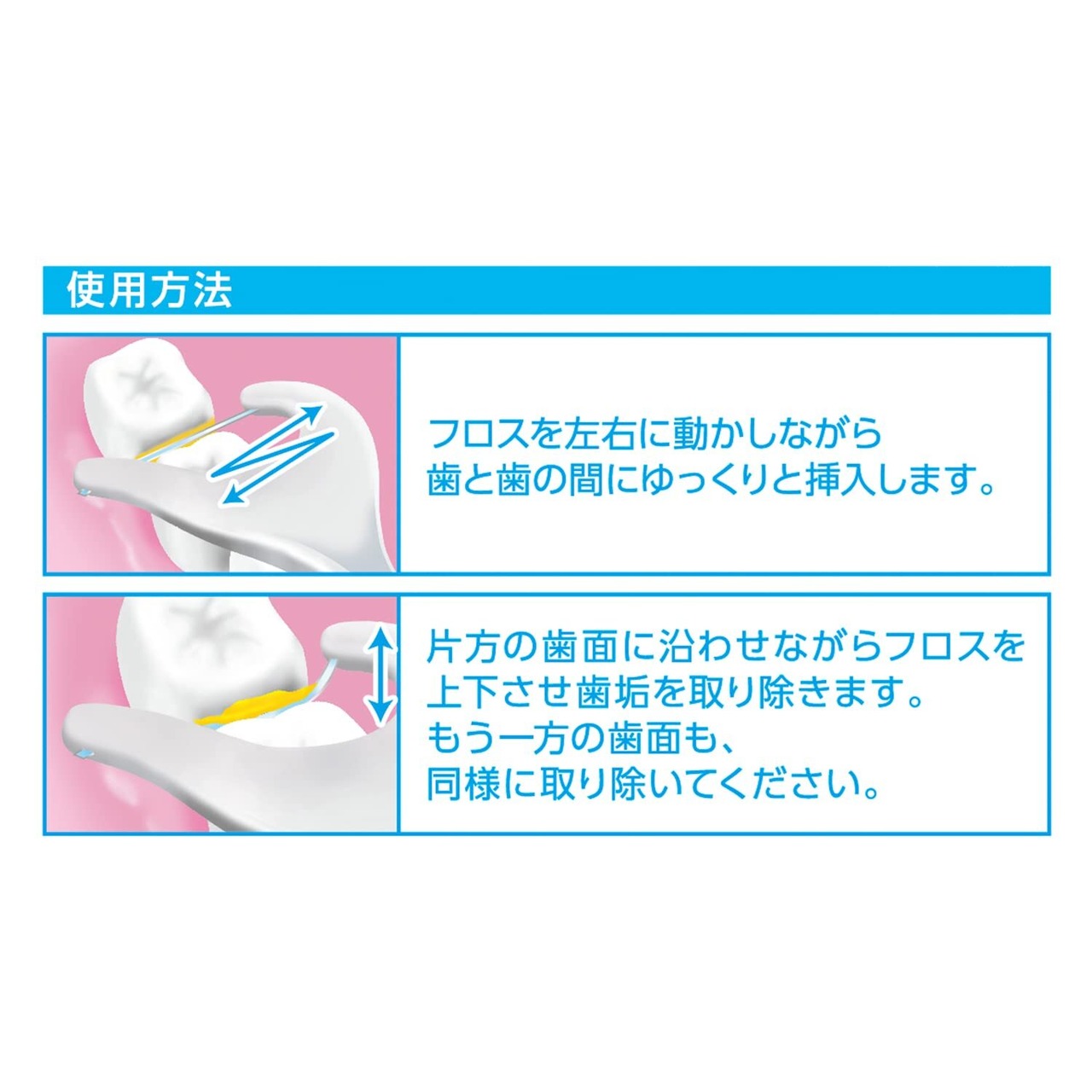 むし歯や歯周病の原因となる歯間の歯垢を取り除くbr>フロス部分に薄くて切れにくいPTFEを採用。