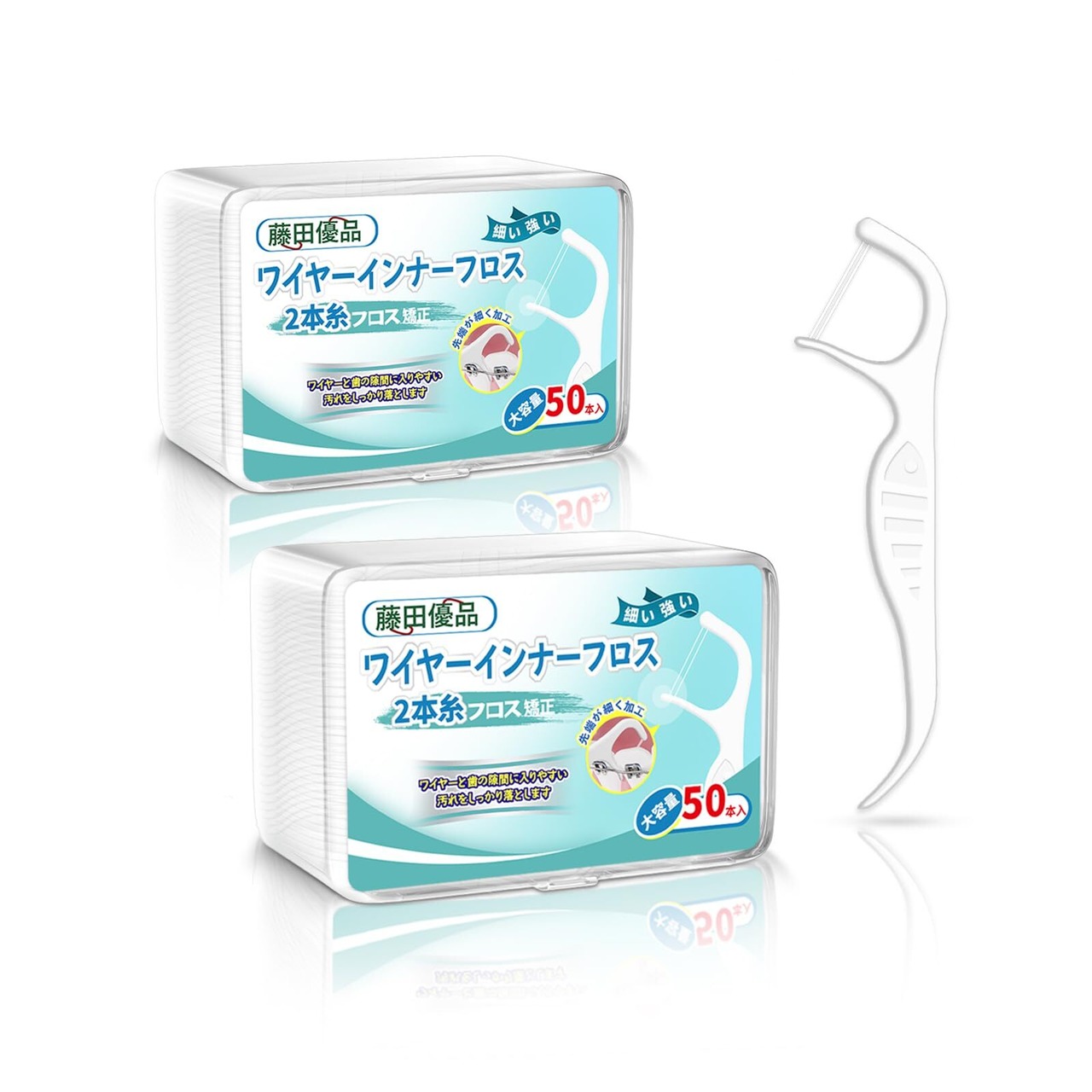 【ケースが付属、携帯に便利】50本x2箱、大容量100本入 矯正 フロス 歯 ワイヤーフロス、ケースサイズが小さいので持ち運びやすく、出先や旅行にも良いです。毎日の歯のメンテナンスに欠かせないです。