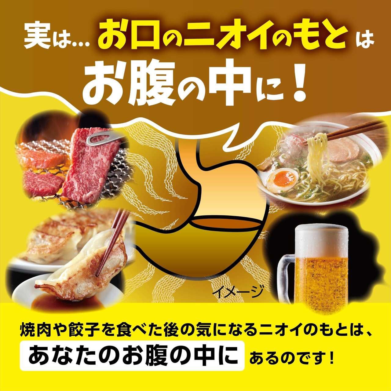 ブレスケアはおなかの中で溶け出す息清涼カプセル。