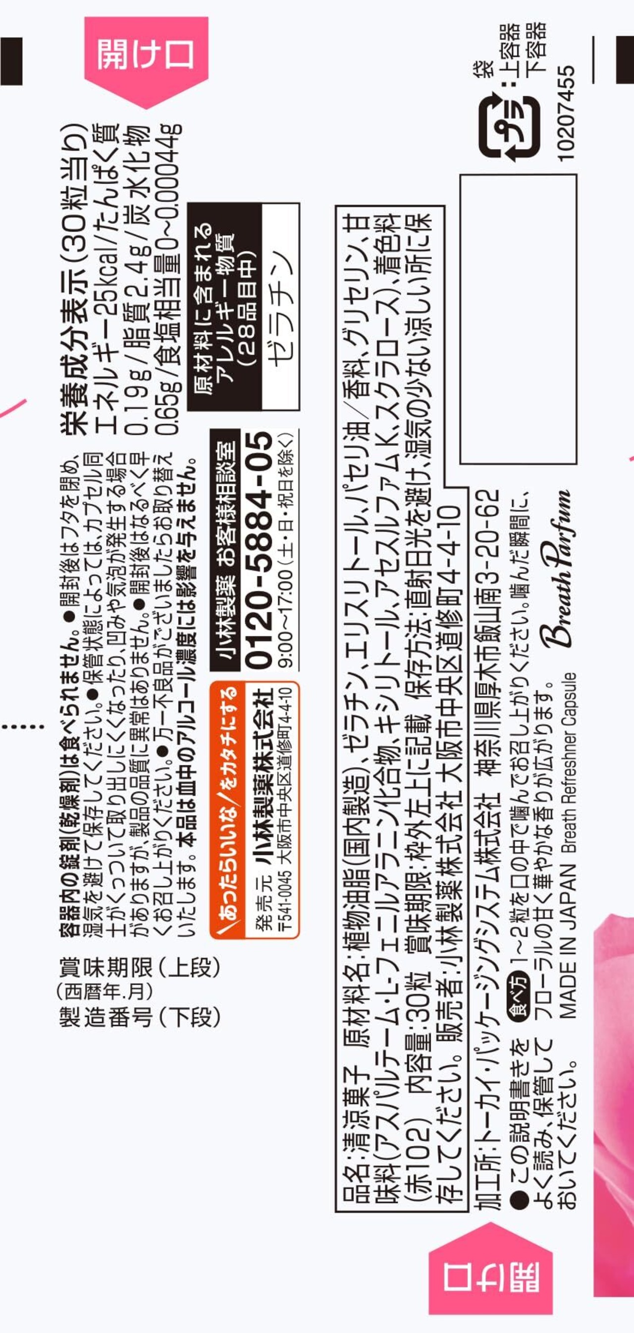 ●お口の香水ブレスパルファムから手軽に使いやすいカプセルタイプ登場●30粒(プレシャスフローラルの香り)●人と会う前などに、カプセルがはじけてすぐに良い香りを実感できるお口の香水カプセル●息が気になる時、息を香らせたい時などの息のエチケットに●1~2粒を口の中で噛むと、フローラルの甘く華やかな息が香ります。●お口の中でカプセルがはじけるので、口全体に良い香りが広がります。