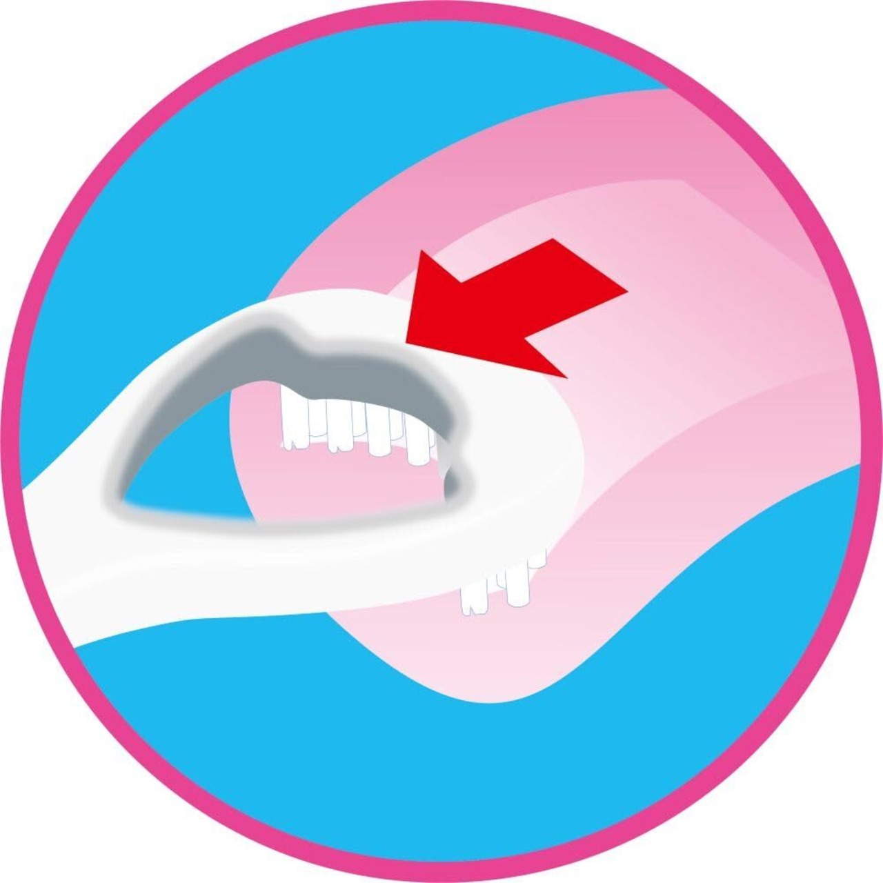 ・ブラシ面を舌にのせ、舌の奥から手前へやさしく引き出してください。
