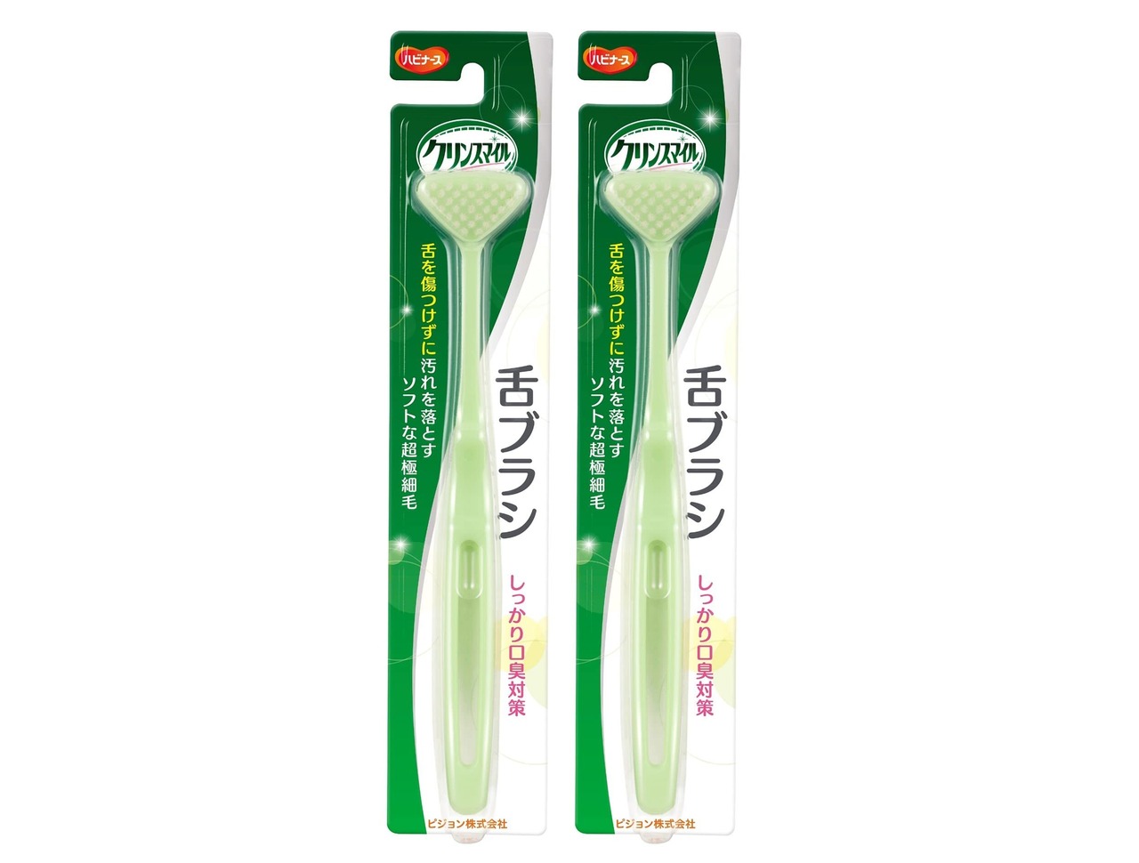 舌ブラシ 2個パック ハビナース クリンスマイル 舌みがき 舌クリーナー 口腔ケア 舌苔除去 口臭ケア オーラルケア 極細毛 Rカット植毛 180㎜ 高齢者 介護 大人用 タイ製 1025959