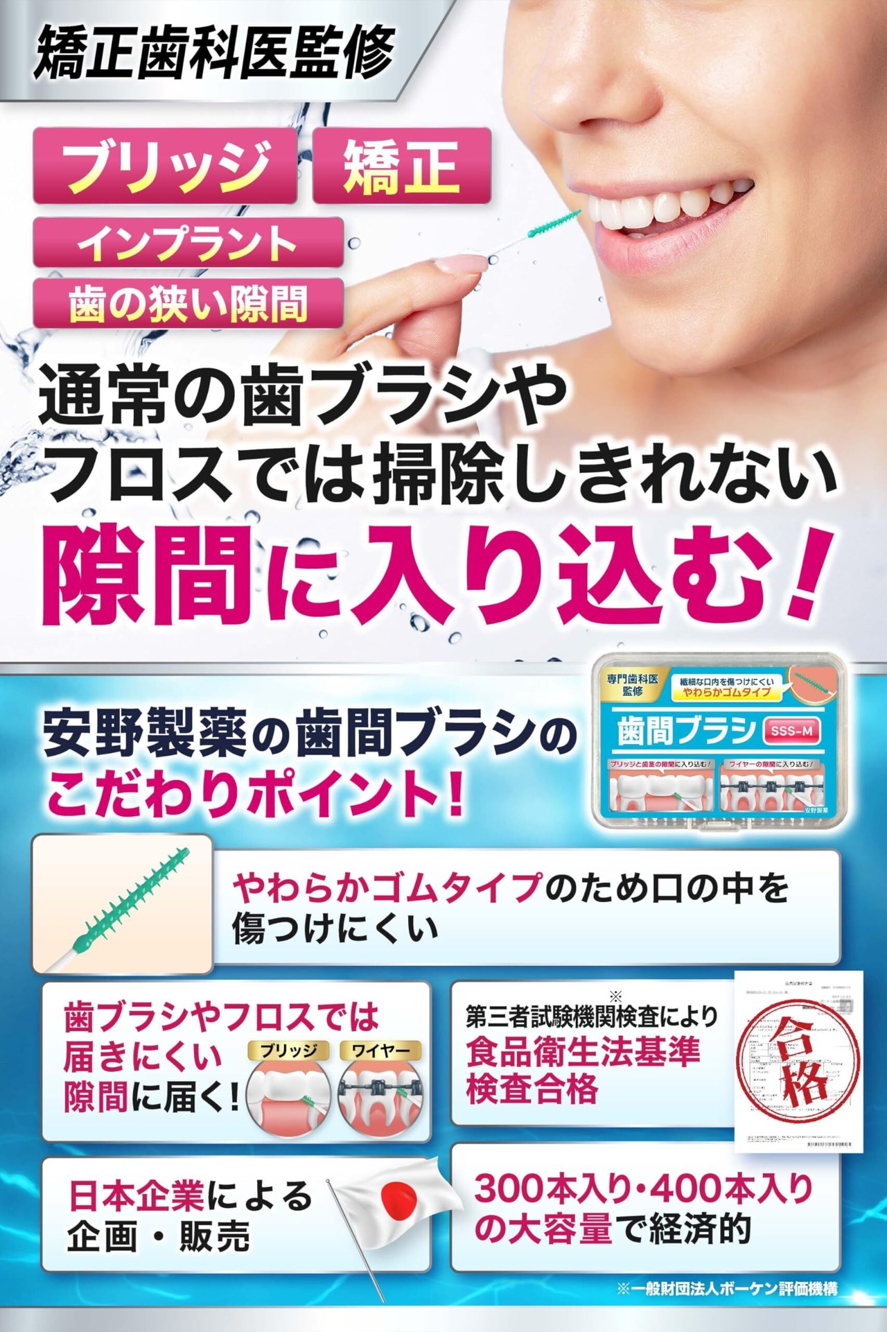【新春セール】安野製薬 【歯医者さんで取扱い中!】 300本入 歯間ブラシ sss しかんブラシ 【ブリッジ用x矯正用xその他狭い歯間にも】【300本パックx大容量】