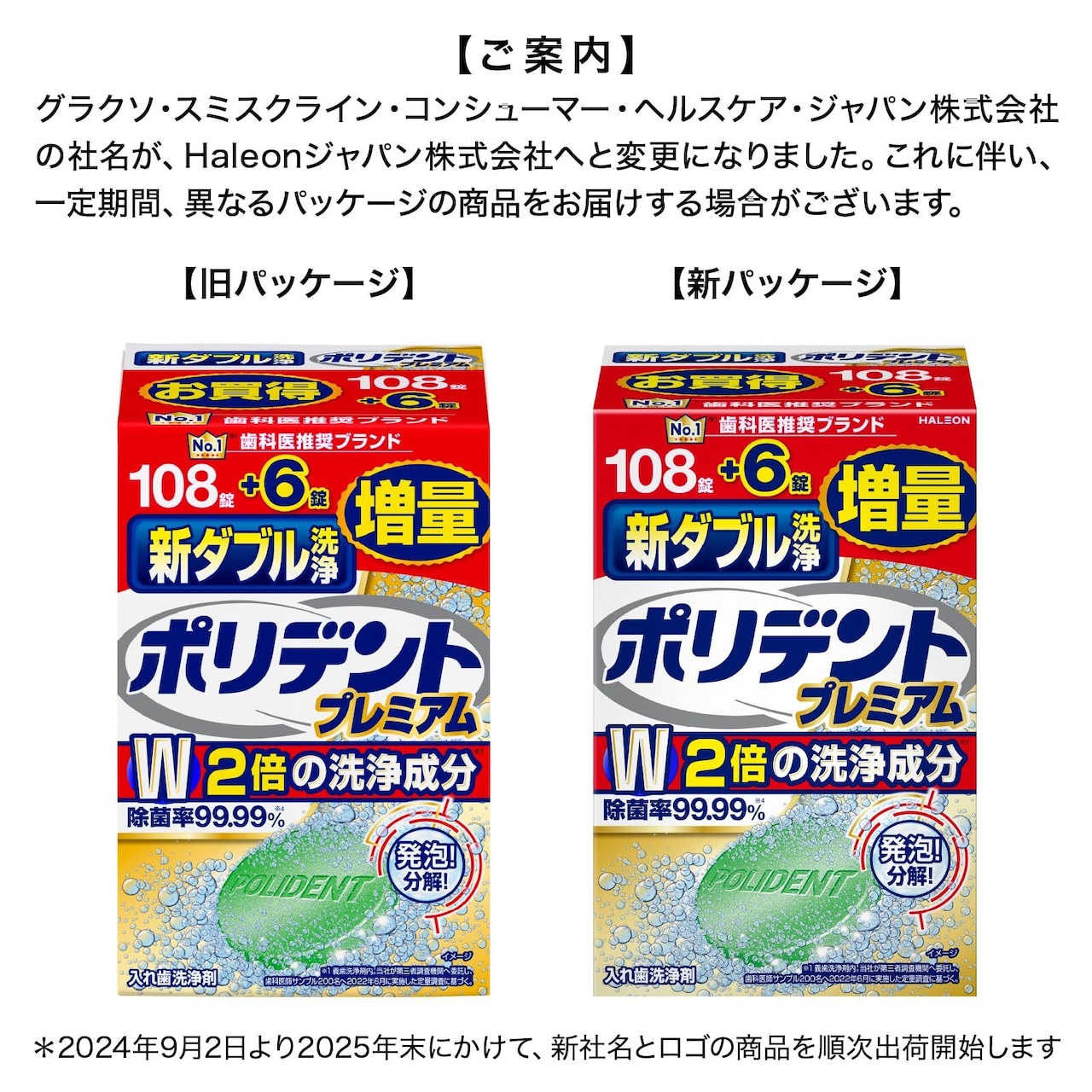 【特価商品】ポリデント 新ダブル洗浄 入れ歯洗浄剤 108錠+6錠増量品 99.99%除菌