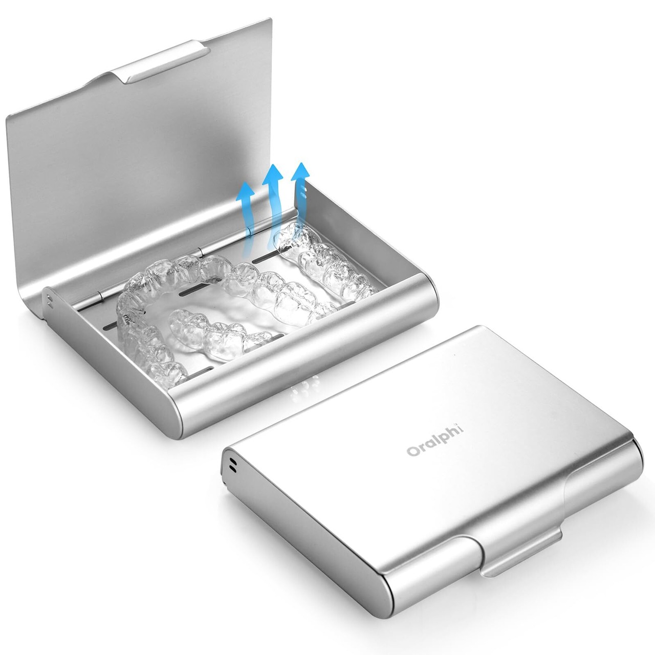 Oralphi アルミニウム製 マウスピース ケース インビザライン対応 入れ歯ケース 携帯用 リテーナーケース 穴あきで通気性 矯正ケース 多機能 義歯収納容器 旅行用 コンパクト 軽量 薄型 持ち運び 耐久性 しっかり洗える 子供 大人対応