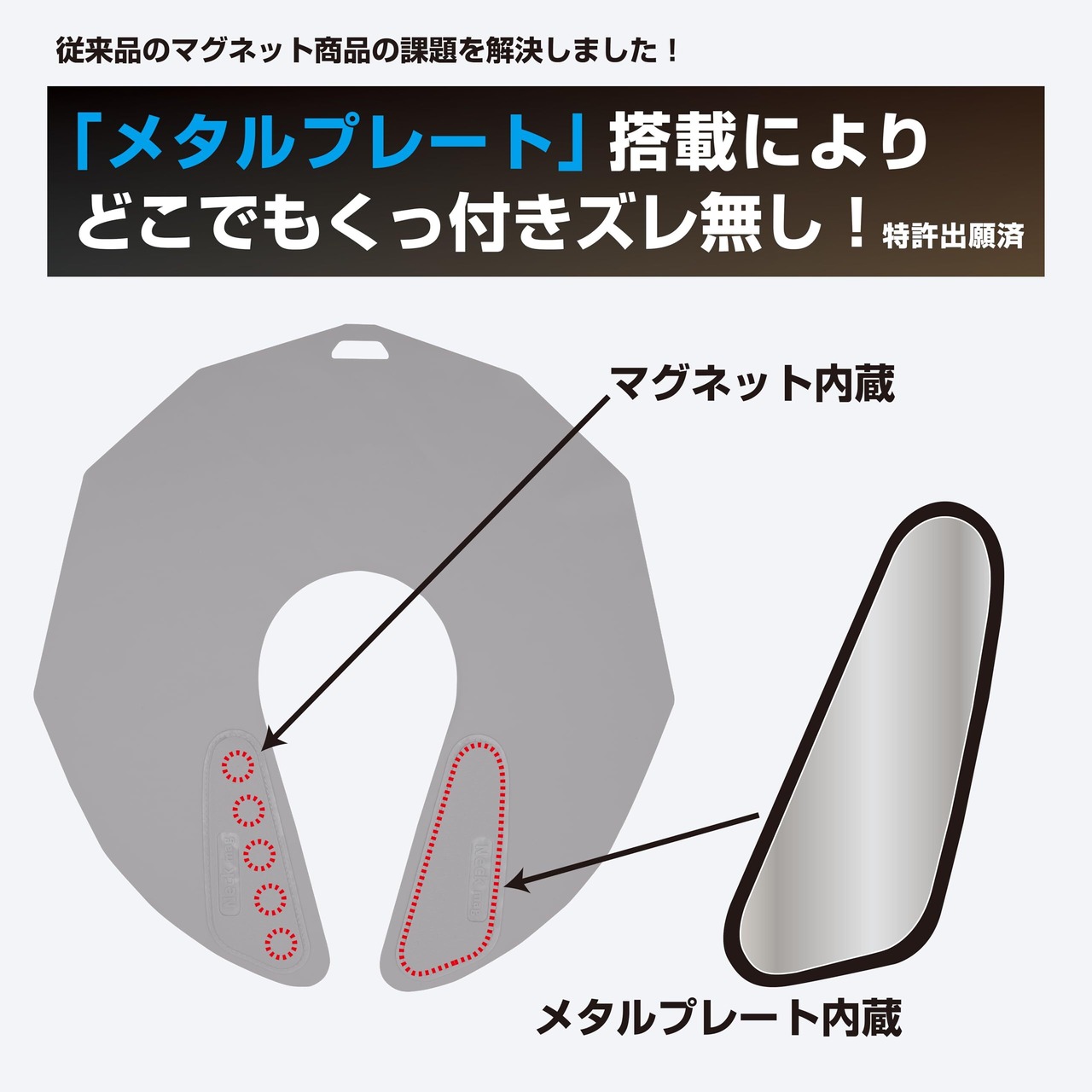 5個のマグネットとメタルプレートの仕組みにより、くっ付く場所が自由でズレが起こりません。