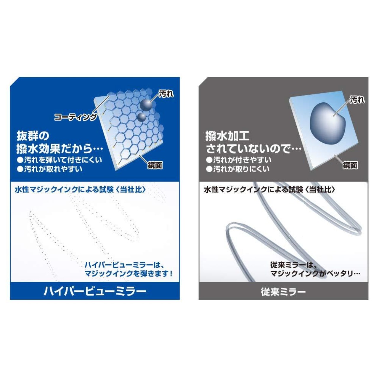 【水汚れを弾く】HORIUCHI MIRRORが開発したハイパービューミラーは、従来のミラーに高い撥水性がある撥水剤をコートしています。水汚れが付きにくく、取れやすいためお手入れが簡単です。