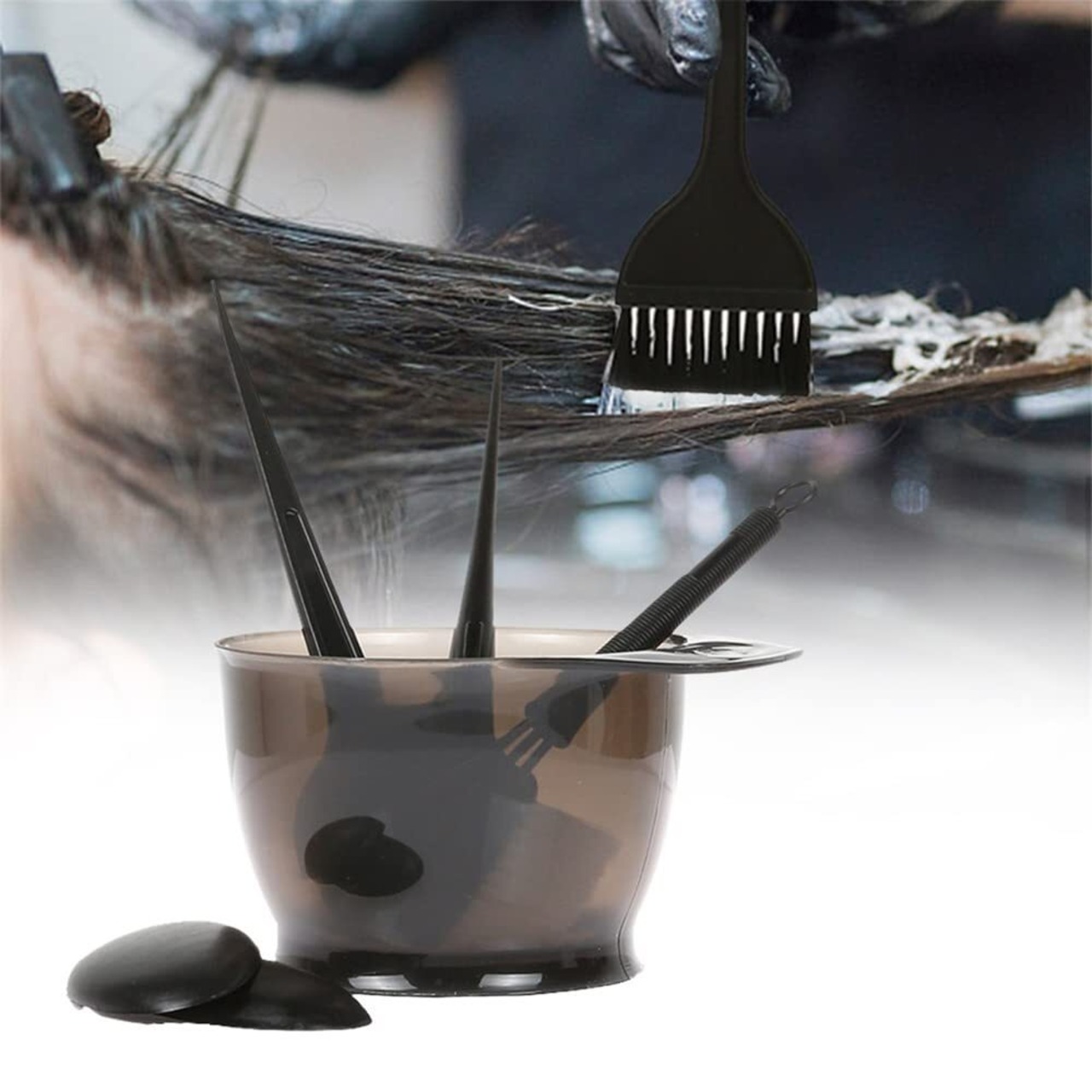 【使い方】ボウルの内側にある測定値を簡単に読み取ることができ。かき混ぜ棒付きの色染めボウルで、より均一にかき混ぜます、髪の色付けを簡単に、きれいに、フルブラシは柔軟で硬い毛で設計し、染料の色を均一かつ滑らかに塗布できるようにします。