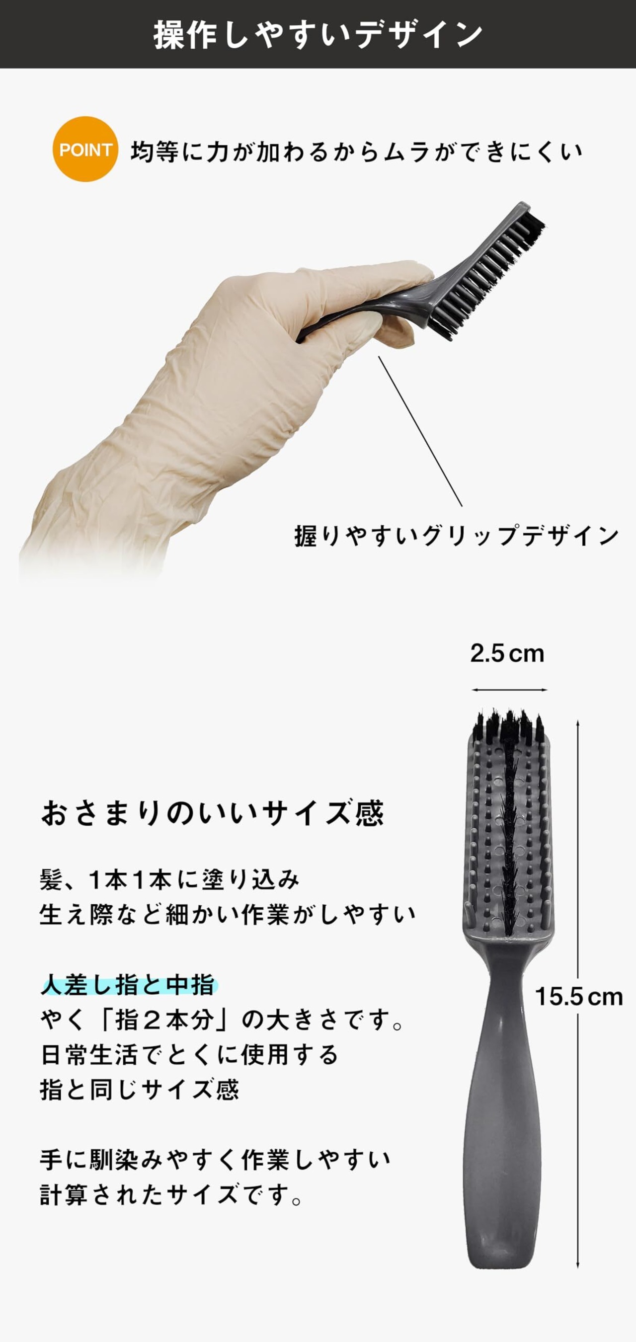 カラートリートメントが乗せやすく、こぼれにくい2ライン式のブラシです。ムラなく伸びが良くなるので、液剤のつけたしや仕上がりのムラなど、カラーリング時のストレスを減らします。