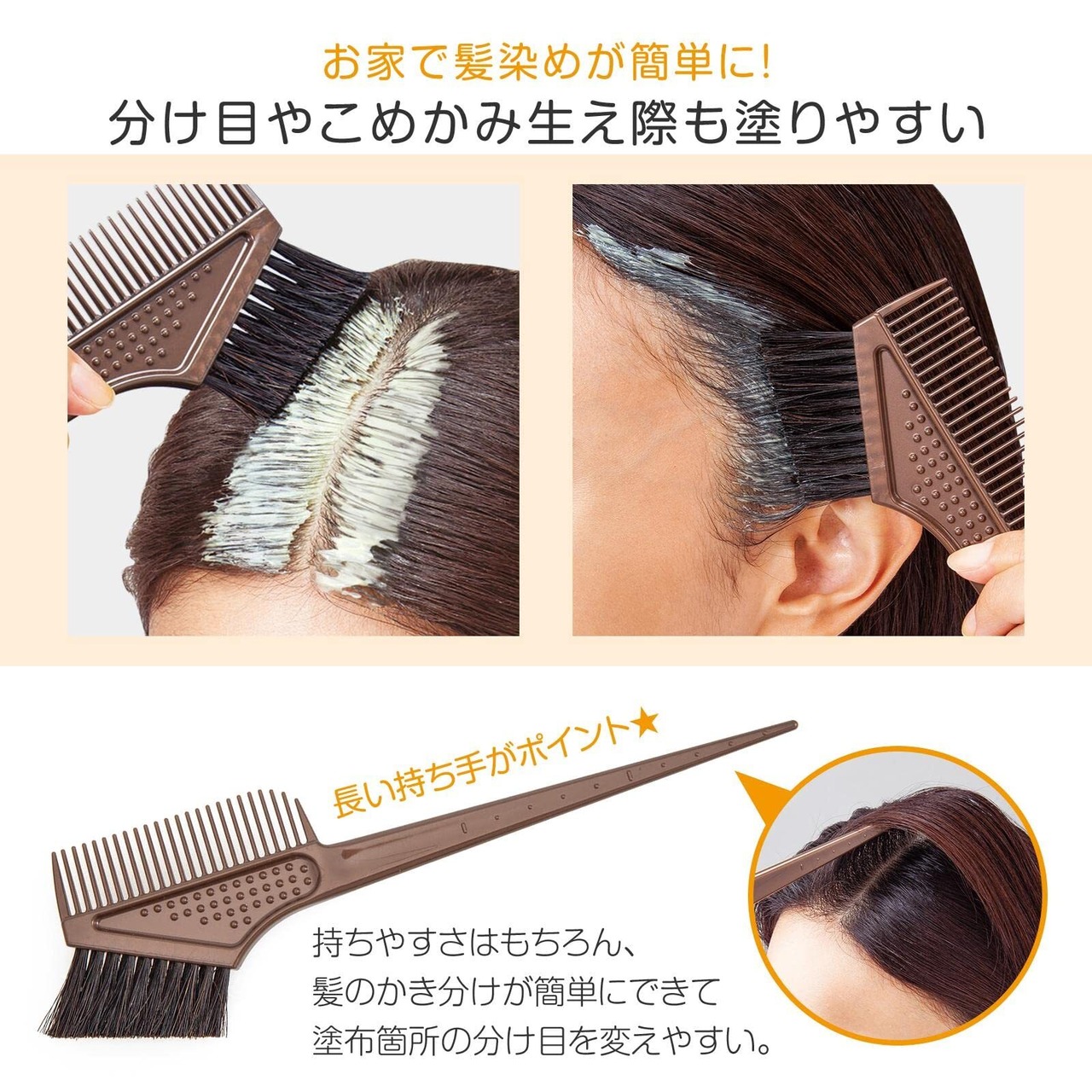 ブラシとコームを使い分けてムラなく染める!