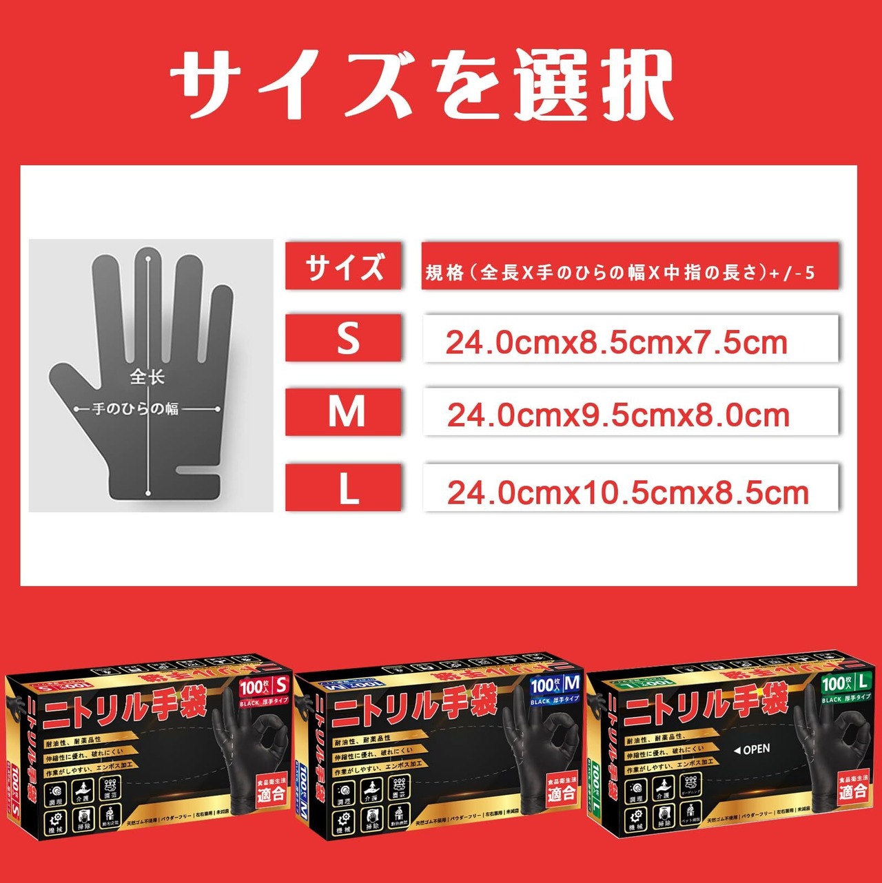 【サイズ】 S:24.0cm×8.5cm×7.5cm M:24.0cm×9.5cm×8.0cm L : 24.0cm×10.5cm×8.5cm (全長×手のひらの幅×中指の長さ)+/-5