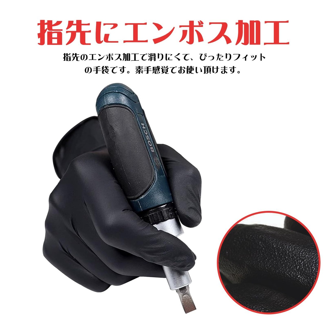 【左右両用・使いやすい】指先エンボス加工で滑り止め抜群,左右兼用で無駄なく使えます着脱簡単。手にピッタリフィットする厚手仕上げにより、丈夫でお使いいただけます!厚くてソフトな手袋なので、指先の感覚が生かせる細かい作業に最適。