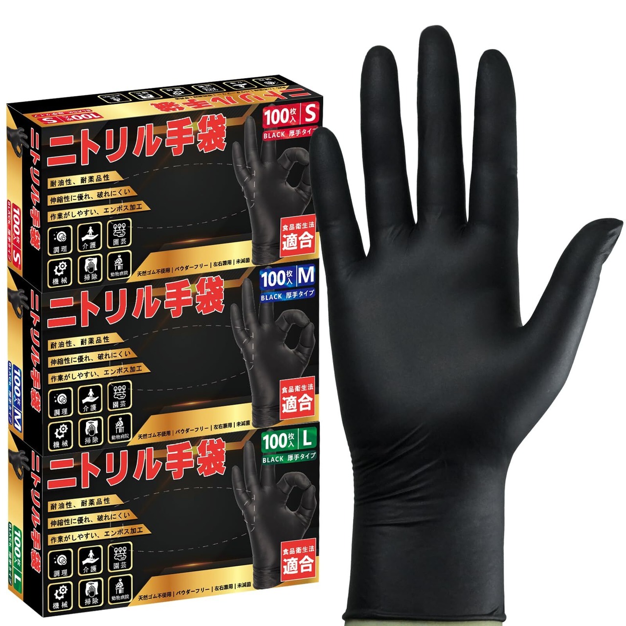 [SANYU] ニトリル手袋 ニトリルグローブ 使い捨て手袋 黒 ブラック 0.08mm 食品衛生法適合 粉なし パウダーフリー 厚手 100/300/500/1000枚入