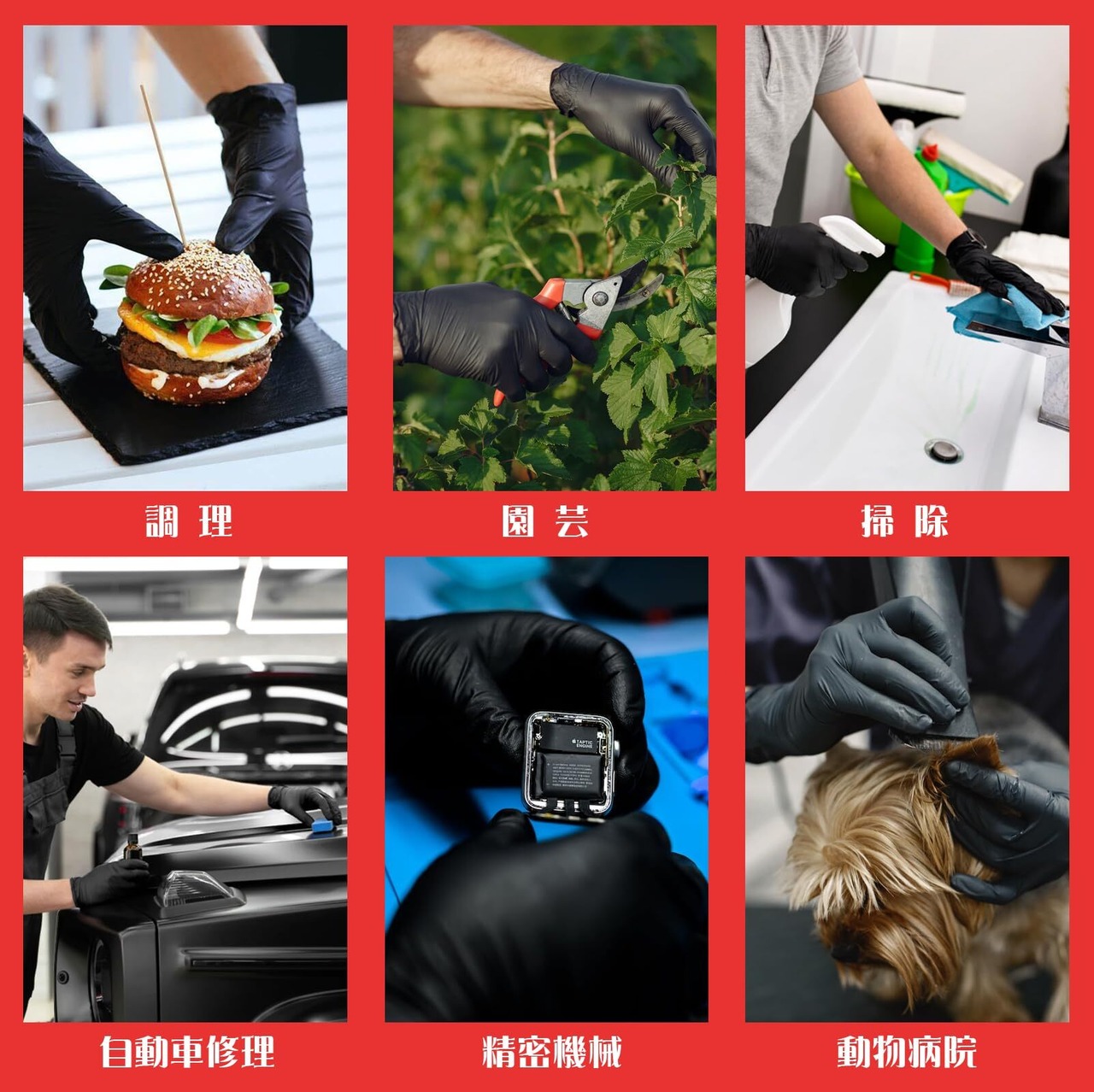 【幅広い対応力】炊事、買い物、掃除、塗装、洗車、園芸、美容髪染め、介護、各種整備等などに幅広くご使用頂ける使い捨て手袋です。