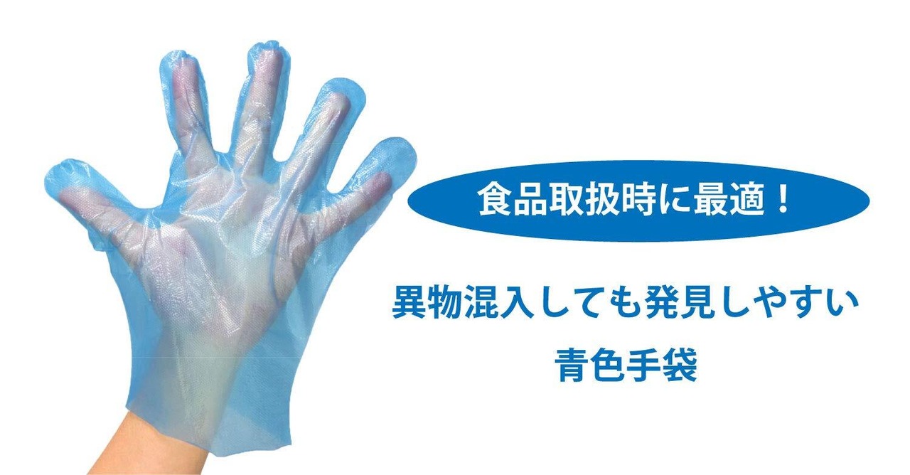 異物混入しても発見しやすい青色エンボス手袋。便利で経済的な左右兼用タイプ。すべりにくいエンボス加工。4サイズあり。食品衛生法適合品(厚生省告示第370号)
