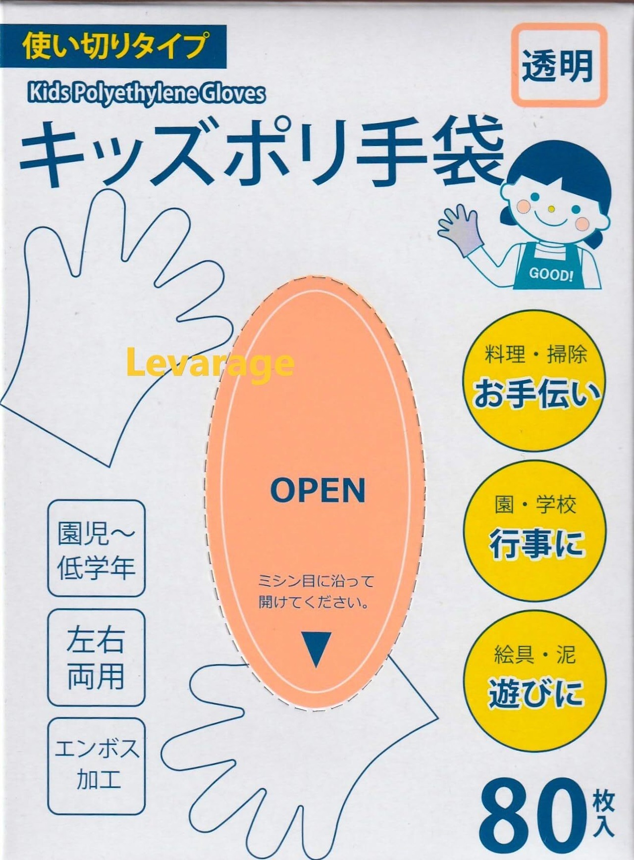 キッズポリ手袋 (80枚入) キッズポリ手袋 透明 80枚入り 日用品 使い捨て手袋 年末 そうじ 掃除 大掃除 大晦日 お手伝い 家庭菜園