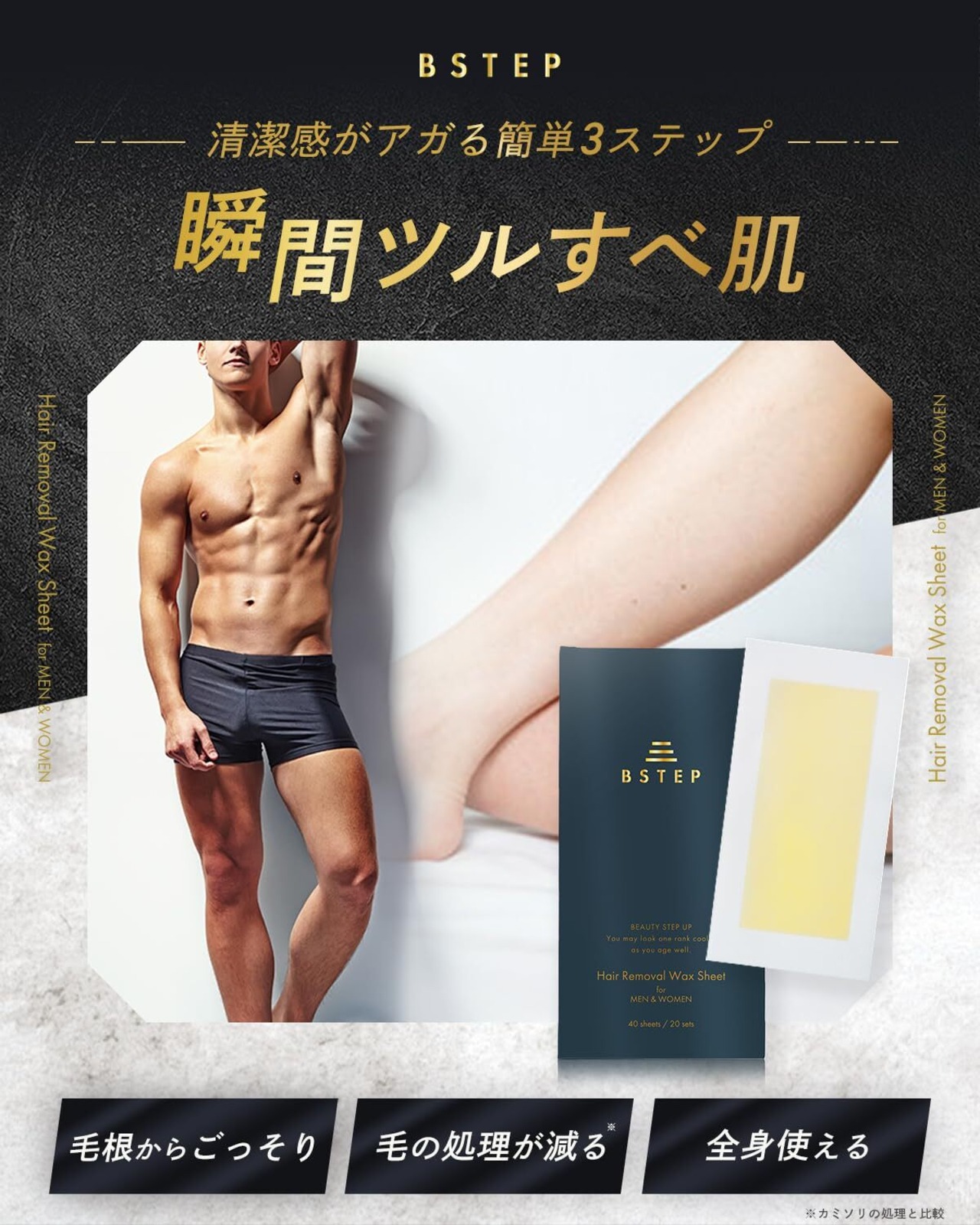 BSTEP 脱毛ワックス 脱毛シート ブラジリアンワックス 【大容量パック40枚入り×場所を選ばす使用可能】 (40枚入り)