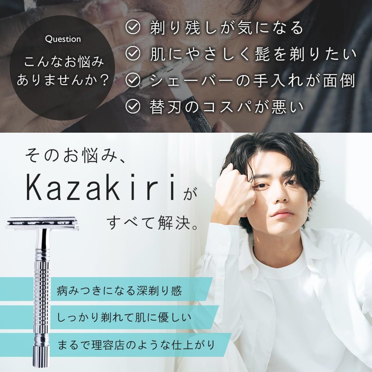 Kazakiri W 本格深剃り 両刃カミソリ 本体+替刃20枚付き 剃刀 かみそり 髭剃り 顔そり 男性 メンズ