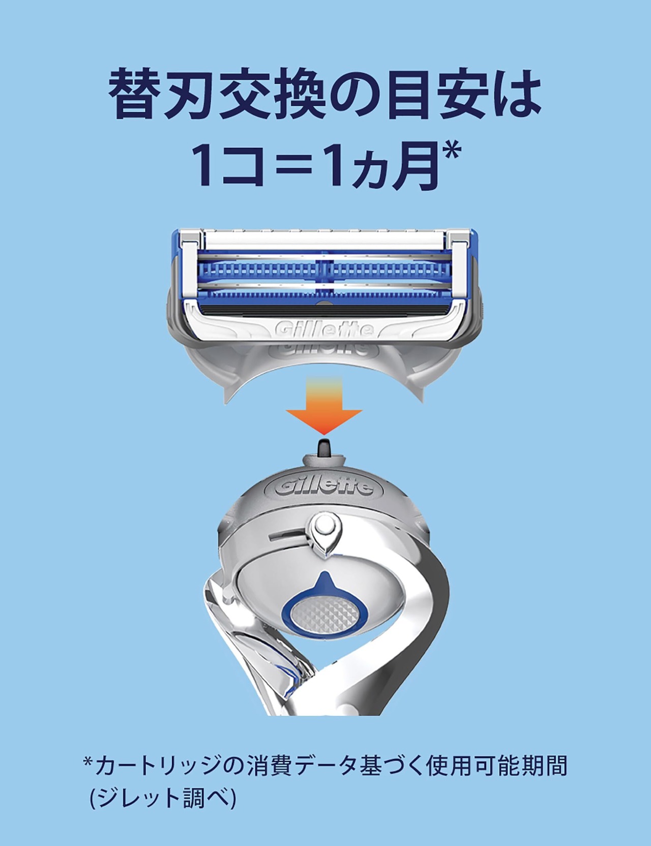 こちらは替刃のみの商品となります。 最大20日間*深剃りできる長持ち刃。20日間切れ味長続き。 *1日1回のシェービング