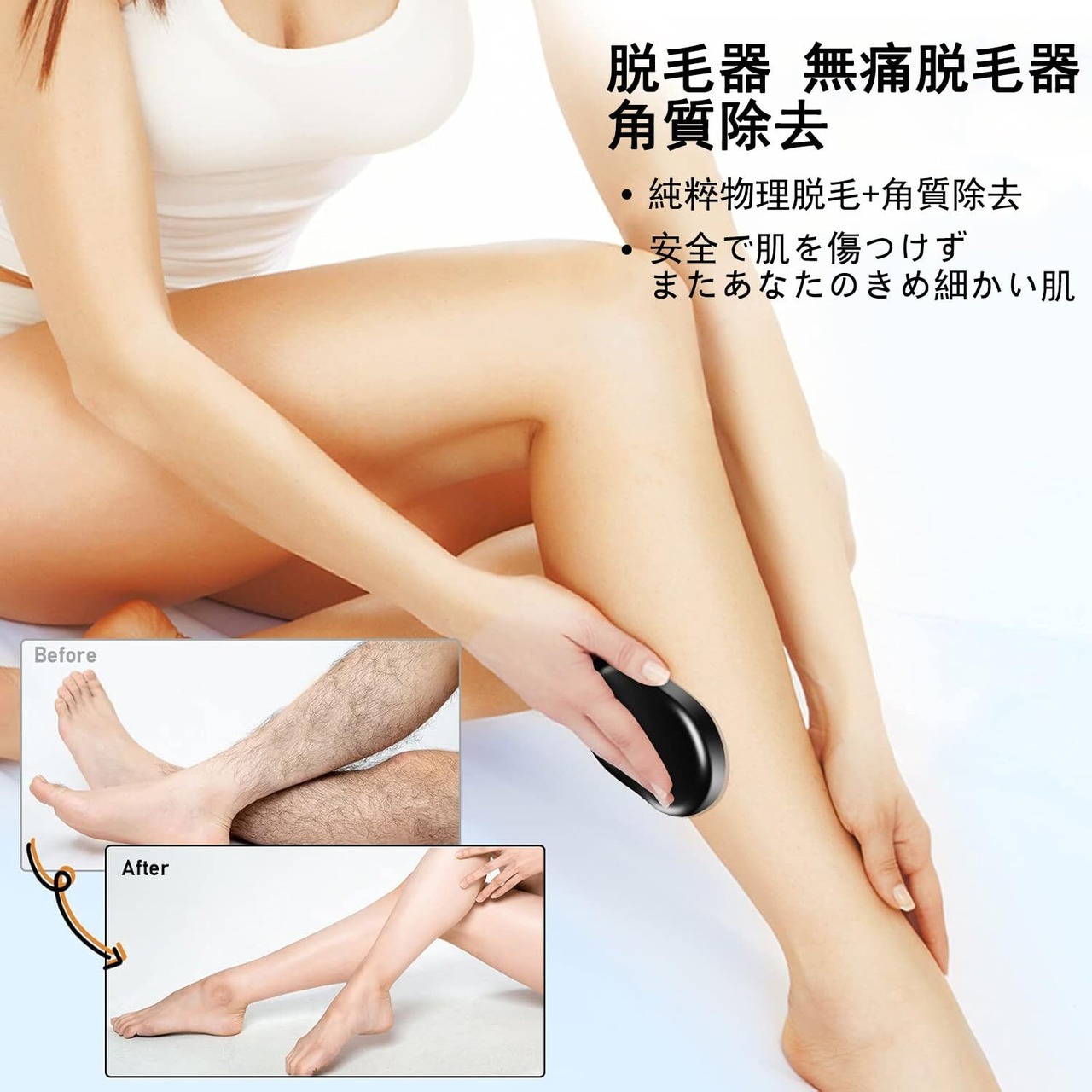 【2022最新】【2025年進級プロ版】無痛脱毛器 擦るだけ 最新 脱毛器 だつもうき脱毛器 クリスタルヘアイレイザー レディース メンズ 角質除去 男女兼用 物理脱毛 小型 軽量 家庭用脱毛器 毛髪の成長速度を抑える ファッション お手入れ簡単 環境に優しく コンパクト 出張 旅行 エコ 便利日本語取説書付き(ブラック)