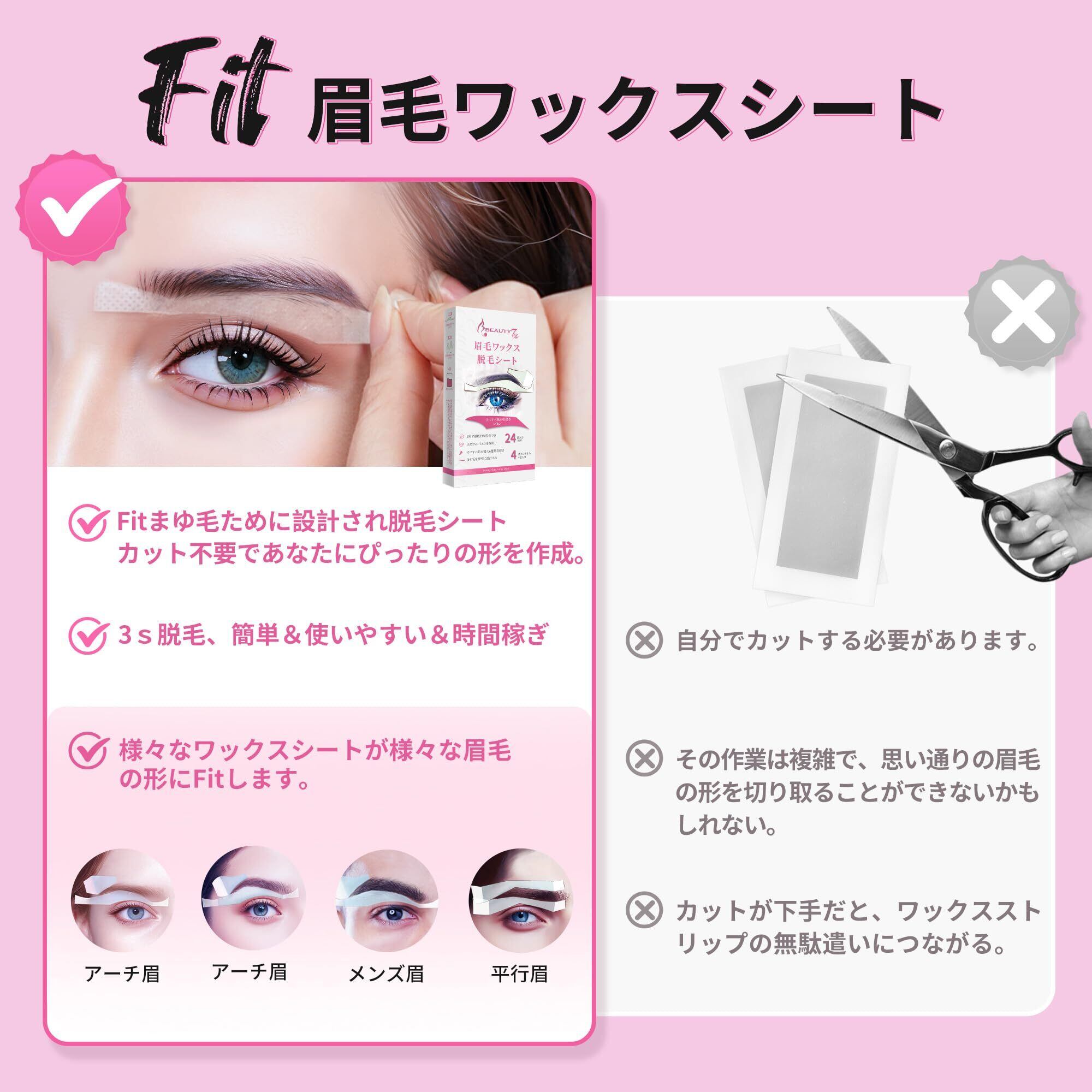 【在庫セール】Beauty7 眉毛脱毛シート 12組 24枚 入り まゆ毛用 顔 眉毛 だつもう 口元脱毛ワックスシート 脱毛テープ 敏感肌 除毛 レディース メンズ 兼用(24枚)
