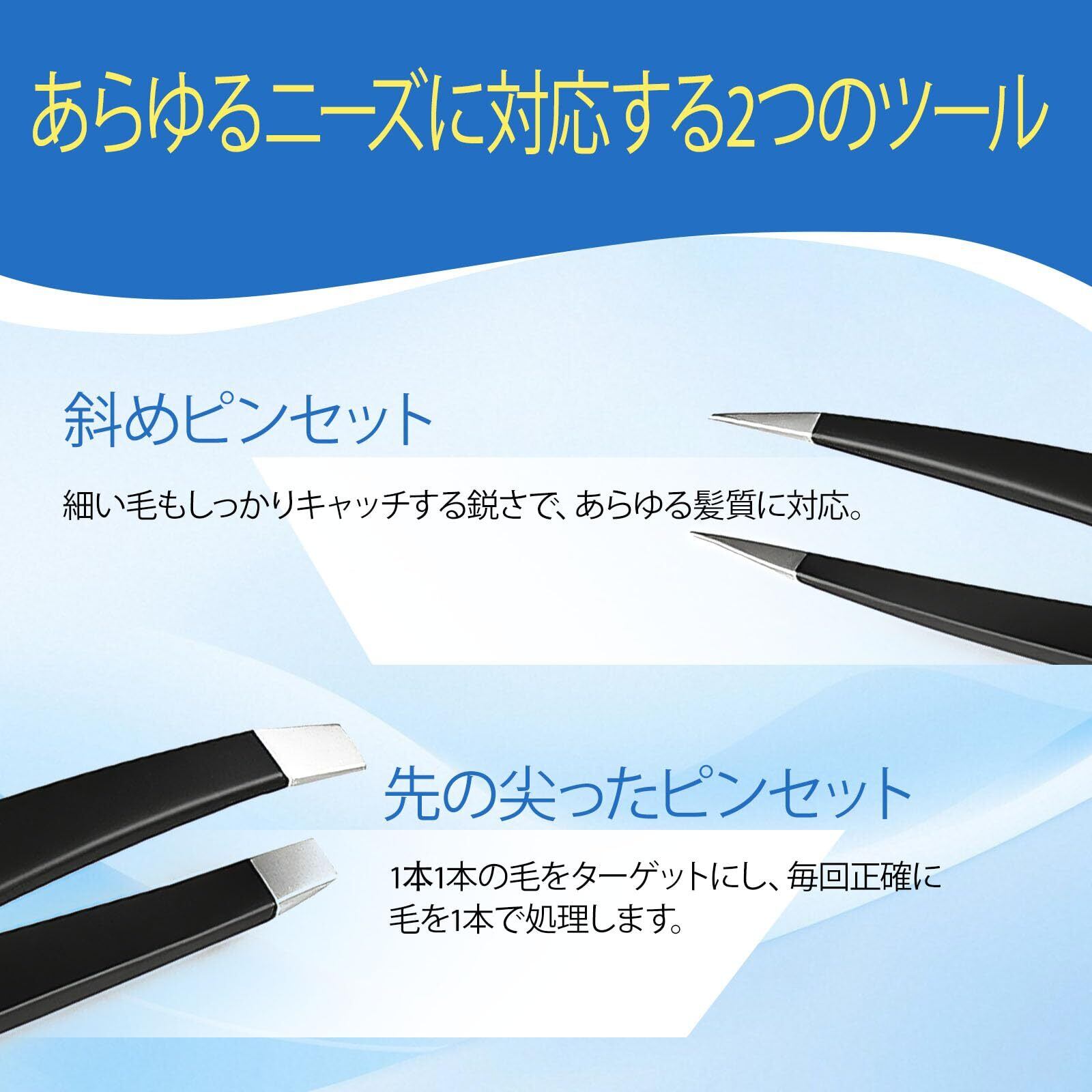 YISCOKO プロ仕様 毛抜き フェイシャルヘア用 女性、ステンレススチール製眉毛ツイーザー (2本入り、ブラック)