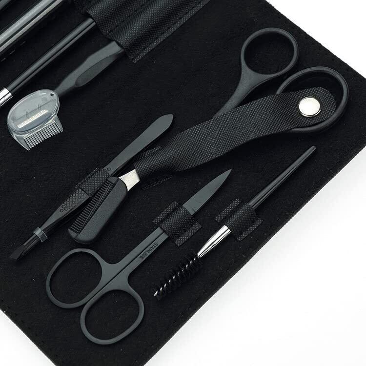〇セット内容 カミソリ(大)(小)、ハサミ(大)(小)、コーム付ブラシ、アイブロウペンシル、ピンセット、スクリューブラシ