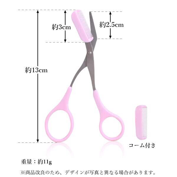 眉毛 ハサミ 眉毛ハサミ くし付き ピンク ハサミ 眉毛カット アイブロウ 眉毛のお手入れ 眉はさみ 眉カット コーム付き
