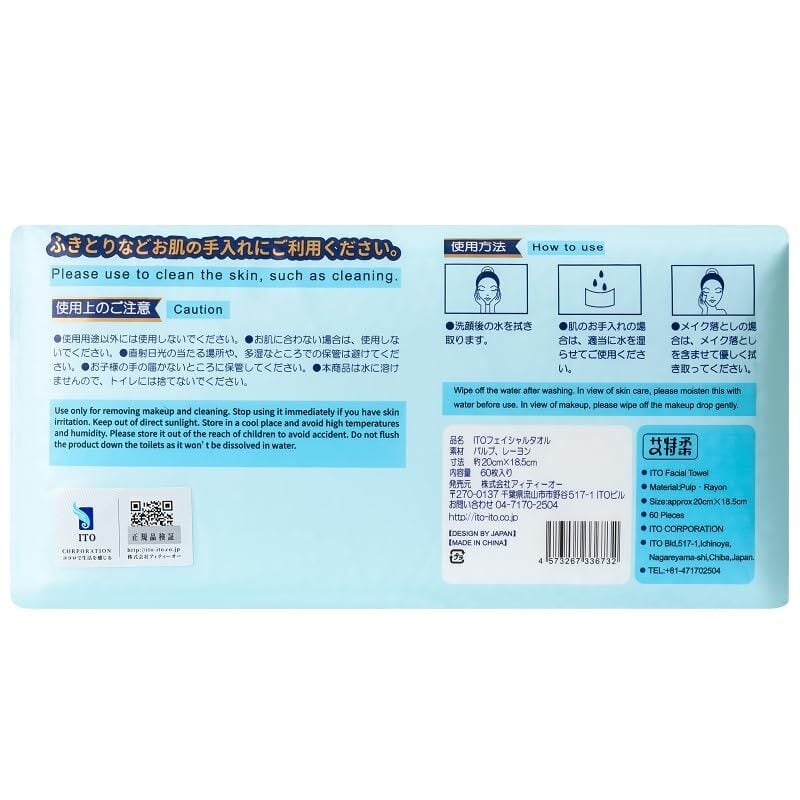 ITO クレンジングタオル フェイシャルタオル 60枚入×3個セット OEKO-TEX®認証 赤ちゃんにも優しい ITOオリジナル鮫小紋エンボス生地 敏感肌 肌荒れ対策 使い捨てタオル フェイスタオル使い捨て フェイスケア スキンケアタオル